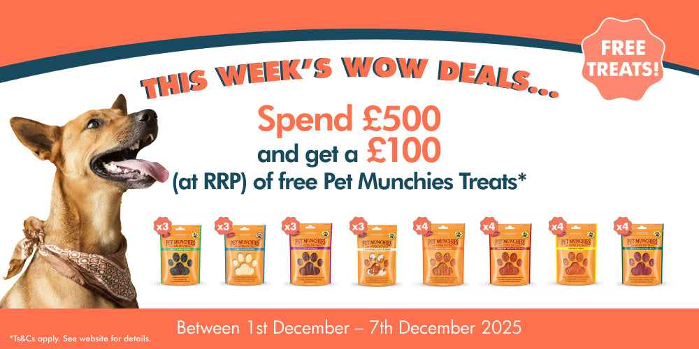 SPEND £500 AND GET £100 OF FREE PET MUNCHIES TREATS!