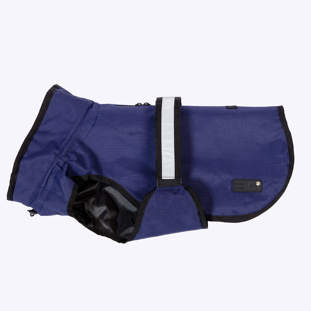 The perfect coat, all year round! Adaptable to changeable weather conditions, the 3-in-1 Dog Coat combines a waterproof outer with a soft detachable inner fleece. Layer together when its cold for optimum warmth or use the lighter weight waterproof for milder rainy days. The inner fleece can be worn separately to keep away the chill in drier weather. Made with waterproof and breathable fabrics, with full chest piece, this coat offers full protection to the elements. The funnel neck collar features an adjustable toggle to shield your dog from the cold and rain, whilst the elastic leg straps hold the coat in place. Simple to fit, with adjustable velcro straps, this coat is suitable for use with collars or harnesses and features a harness access point with waterproof dual zip system. Features a light reflective belt for safety at night. For enhanced safety, why not add a compatible Danish Design Safety Light, which is easy to anchor to the coat with sewn in fixing point. As all dogs are different shapes and sizes we recommend that you measure your dog to make sure that this new coat fits well. Take a measure from the nape of the neck to the base of the tail and this should be a guide for the size you need. The funnel neck on the 3-in-1 Dog Coat is designed to give greater flexibility in size and can sit higher or lower on your dog’s neck to achieve the best fit overall. This dog coat should be worn under supervision and the velcro straps should be fastened snug to keep the coat in place, but not too tight to cause rubbing.