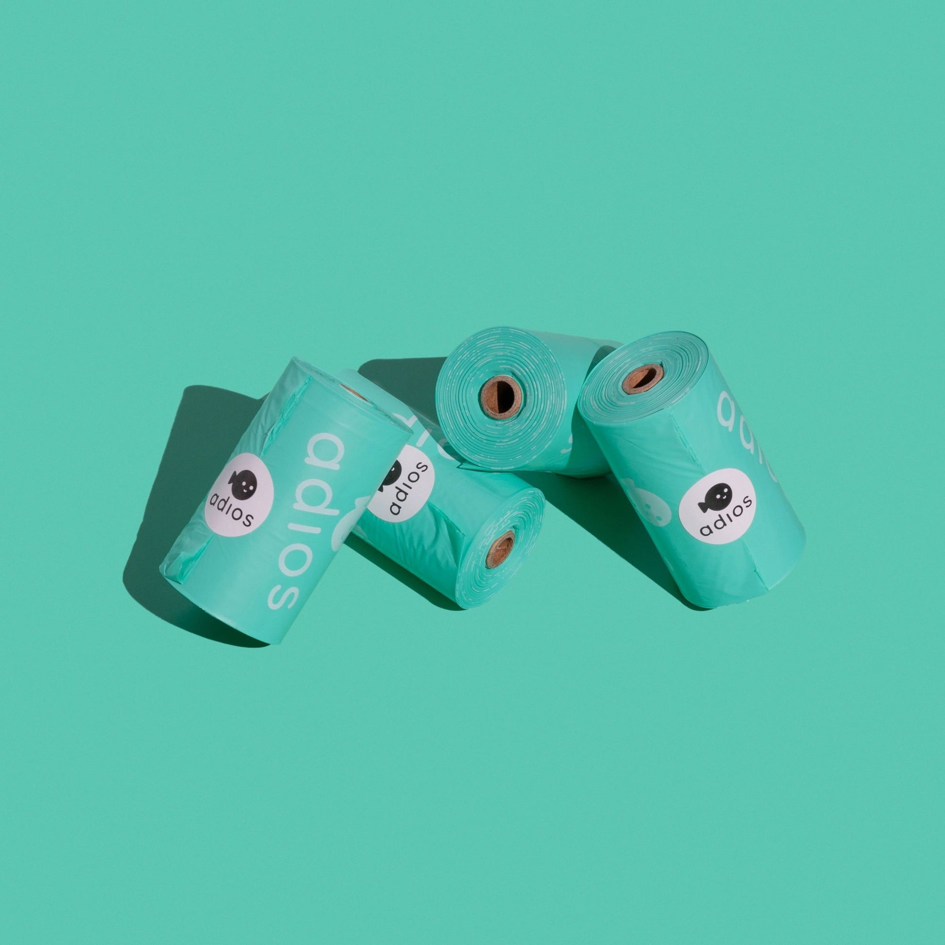 Adios dog poo bags are plant-based, compostable and extra thick. Certified HOME compostable Made from natural materials Extra thick & easy to open No microplastics 15 bags to a roll Mint colour