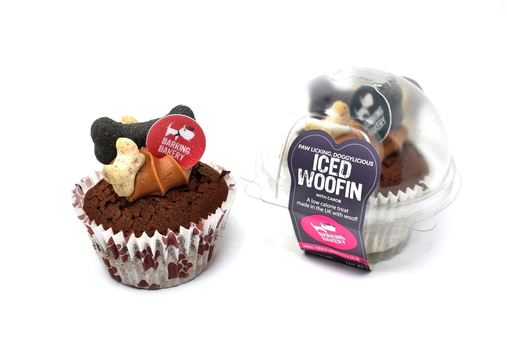 A single Carob woofin with carob frosting cake. Made to share or for the larger of our furry friends. Our light sponge topped with a tail-swishing swirl of famous yoghurt frosting and decorated with a doggy crunchy bone biscuits and edible disc in a paw print muffin wrapper. Packaged in a cute pod that is 100% recyclable and made of super clean, food grade approved plastic. Safe for the all dogs. Defra approved.
