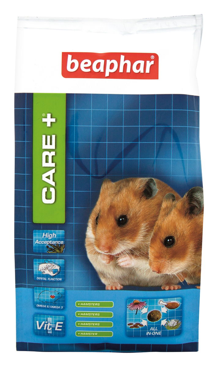 Beaphar Care+ Hamster is an extremely palatable, complete, premium food which has been developed alongside vets and nutritionists. The pellets are small, smooth and specially shaped to allow hamsters to store food in their cheek pouches with ease and comfort. The Beaphar Care+ Small Animal Range uses an extruded, all-in-one formulation to ensure each food pellet contains the same composition and prevent selective feeding. This means no food is wasted and everything is eaten. Beaphar Care+ is hardened to support the natural wearing of the teeth, thus reducing the risk of dental problems. The recipe combines a balanced ratio of quality animal protein, fats, vegetables and zero added sugars to ensure it is perfectly adapted to meet a hamster's high energy and nutritional requirements. In addition, Beaphar Care+ Hamster contains anti-oxidants such as Vitamin E, Omega 3 and 6, green tea extract and spirulina to support the immune system, prebiotics MOS and FOS to support healthy gut flora, and Yucca schidigera extract to reduce the smell of pet's faeces.