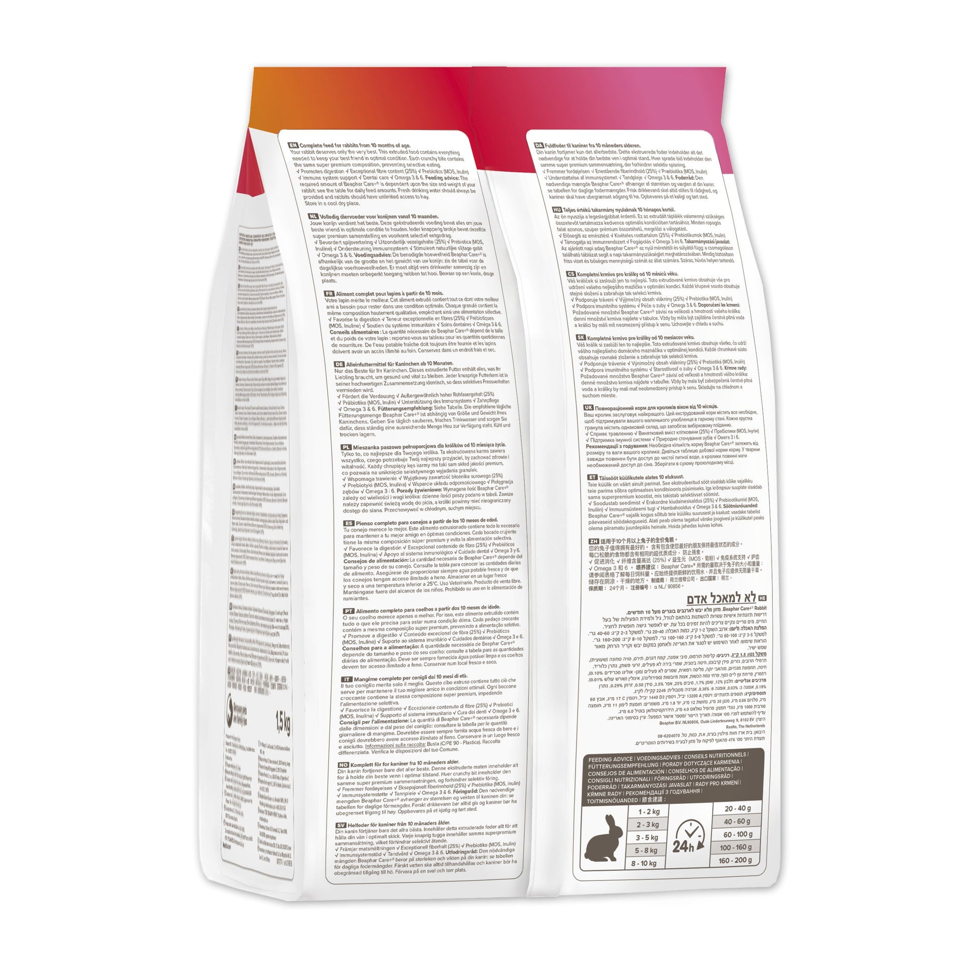 Beaphar Care+ Rabbit is an extremely palatable, complete, premium food which has been developed alongside vets and nutritionists. The pellets have a high fibre content of 25% to support optimal digestion. The Beaphar Care+ Small Animal Range uses an extruded, all-in-one formulation to ensure each food pellet contains the same composition and prevent selective feeding. This means no food is wasted and everything is eaten. Beaphar Care+ is hardened to support the natural wearing of the teeth, thus reducing the risk of dental problems. The recipe combines a balanced ratio of fibre and high quality, digestible vegetable proteins and zero added sugars to ensure it is perfectly adapted to meet a rabbit's nutritional requirements. In addition, Beaphar Care+Â ® Rabbit contains anti-oxidants such as Vitamin E, Omega 3 and 6, green tea extract and spirulina to support the immune system, prebiotics MOS and FOS to support healthy gut flora, and Yucca schidigera extract to reduce the smell of pet's faeces.