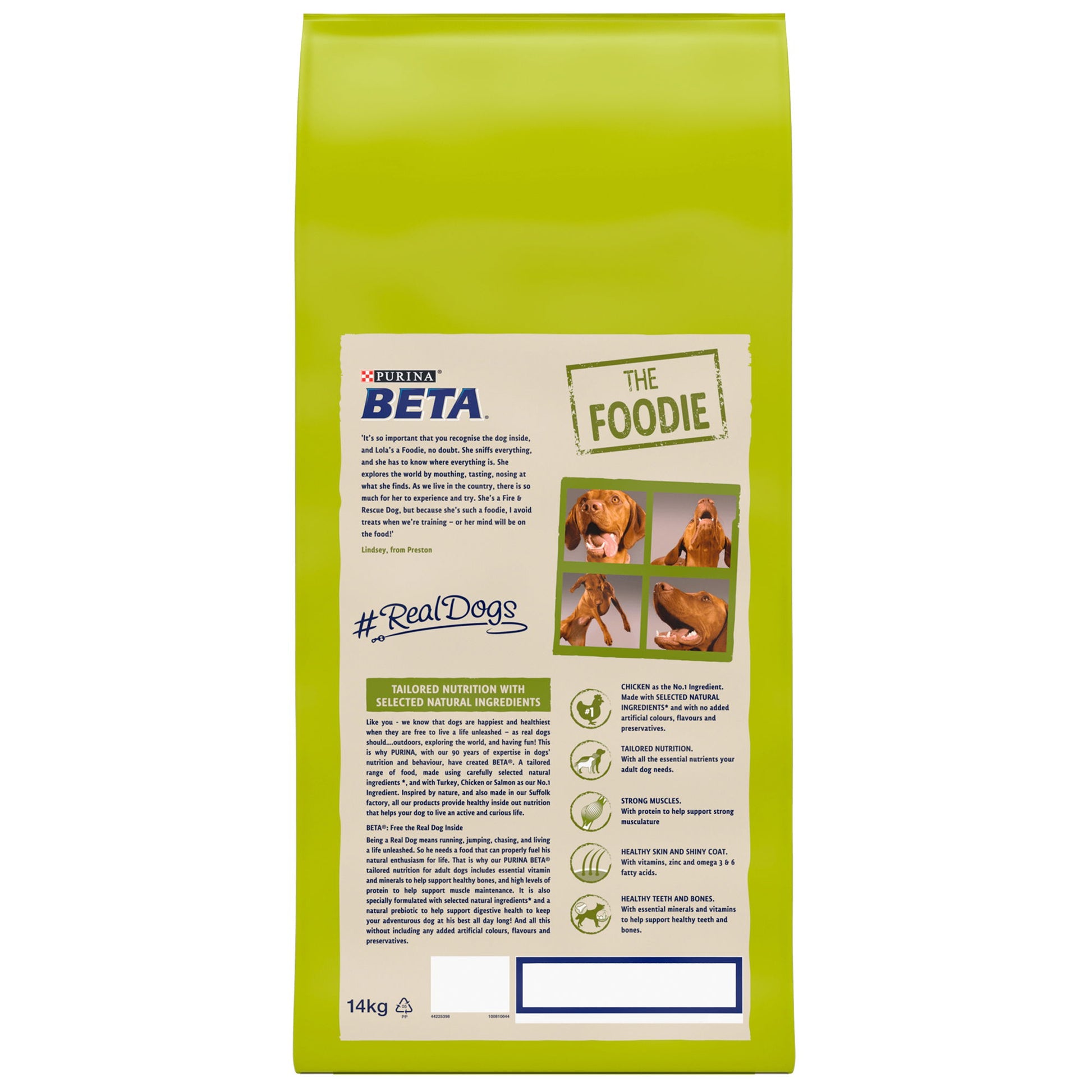 Being A Real Dog Means Running, Jumping, Chasing, And Living A Life Unleashed. So He Needs A Food That Can Properly Fuel His Natural Enthusiasm For Life. That Is Why Our Purina Beta Tailored Nutrition For Adult Dogs Includes Essential Vitamin And Minerals To Help Support Healthy Bones, And High Levels Of Protein And Fat To Help Support Muscle Maintenance. It Is Also Specially Formulated With Selected Natural Ingredients And A Natural Prebiotic To Support Digestive Health To Keep Your Adventurous Dog At His Best All Day Long! And All This Without Including Any Added Artificial Colours, Flavours And Preservatives.
