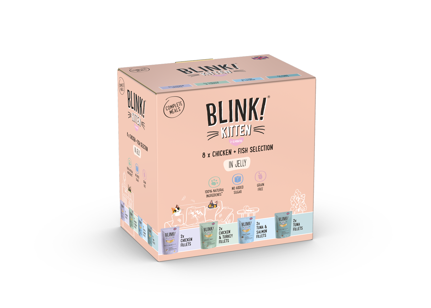 Blink know that finding great food for your kitten is a big responsibility, so, they took the worry out and started with their premium meat and fish fillets. Blink have skipped grains, salt and sugar and only use natural ingredients* and nutrients that your kitten needs for strong bones, a healthy immune system, bright eyes and bags of energy. Which is why their 100% healthy recipes are easy to digest, taste great - and both look and smell like food you actually recognise.