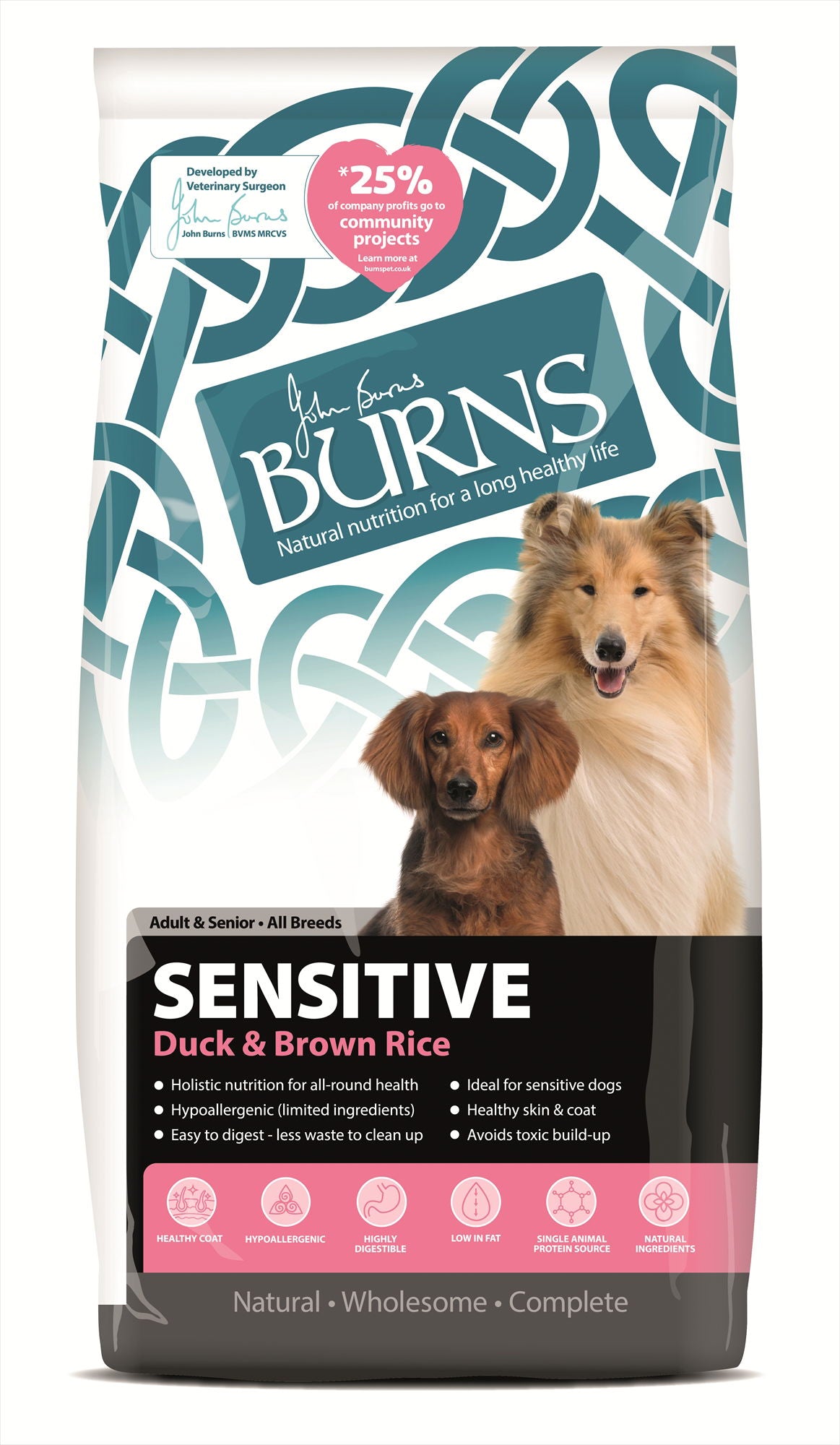 Product Benefits: •Developed by Veterinary Surgeon John Burns •Made with natural ingredients •Made without wheat •Contains duck – novel protein source •Hypoallergenic •Supports sensitive skin and digestion