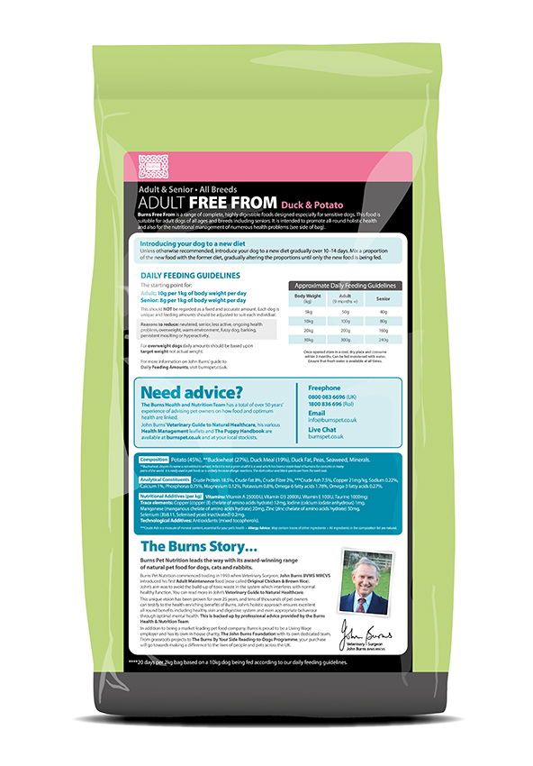 Burns Adult & Senior Free From Duck & Potato 2kg