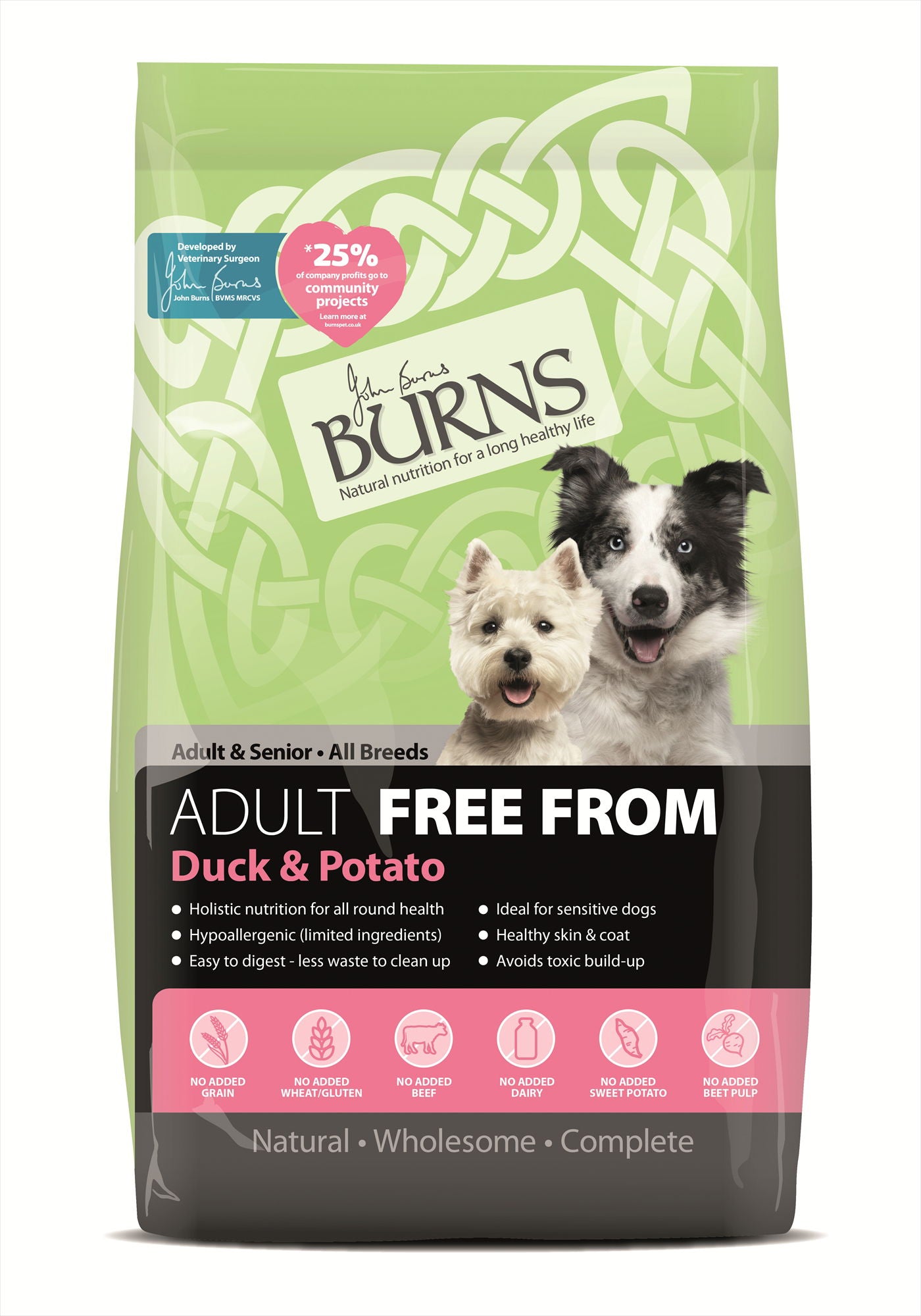 Carefully crafted by popular demand, the Duck & Potato contains all the usual benefits of the Burns diets in a Free From formula. Duck is a novel protein source; this means that if your dog has never eaten it before they will be less likely to have a reaction. The combination of duck and buckwheat makes this food particularly tasty so it’s also a great option for fussy dogs.