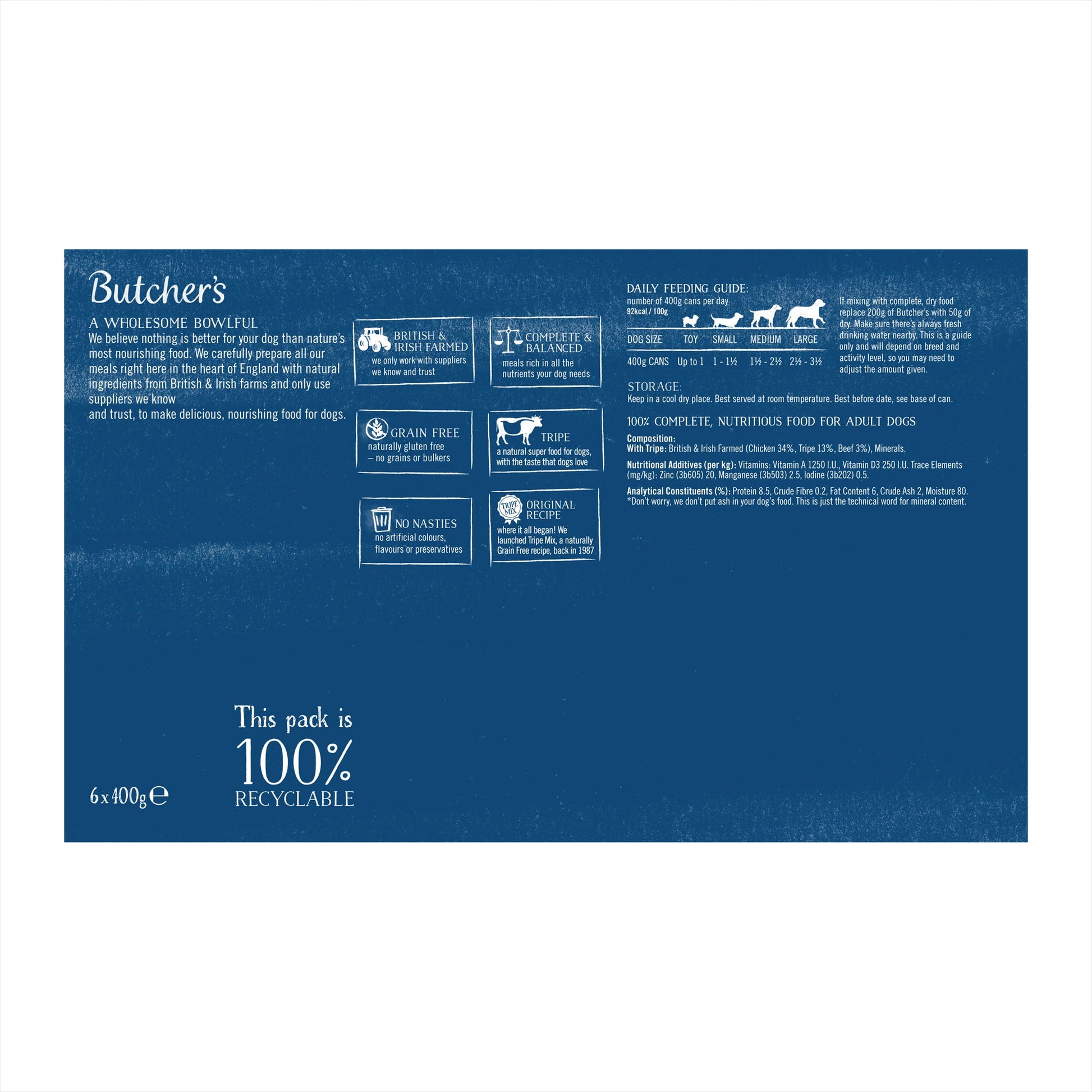 Our Tripe recipe is naturally packed with high-quality protein, calcium for strong bones, Vitamin B12, and the all-important Omega-3 and Omega-6 to support the immune system and promote healthy skin and shiny coats. Unlike other tripe you’ll find, ours is green, because it comes from grass-fed cattle so retains all its natural nutrients. Being grain free this recipe is naturally gluten free, containing no grains or bulkers. This Tripe recipe is Butcher’s original recipe, and has been carefully made since 1987! Tripe is the natural super foods for dogs, with a taste they just love!
