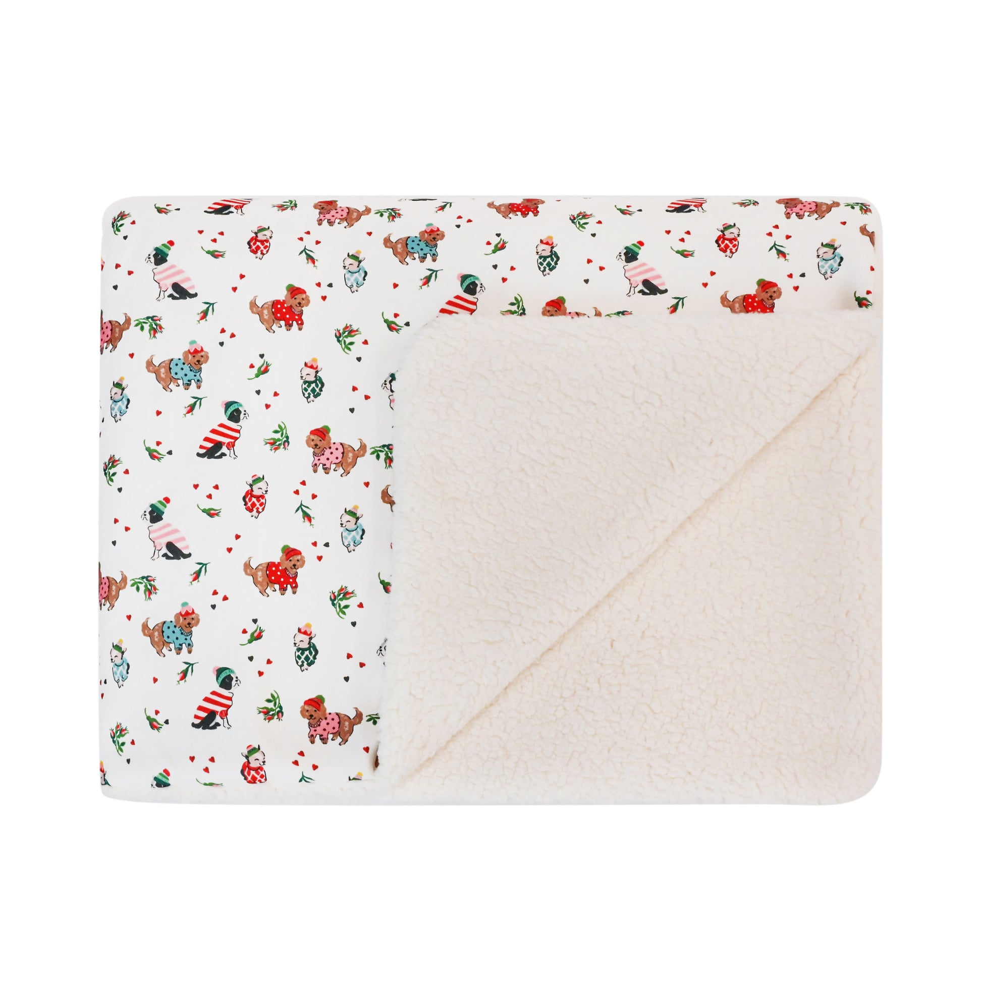 The Cath Kidston Dogs & Roses Pet Blanket seamlessly blends comfort and style. Featuring a charming print adorned with playful puppies and classic floral accents, this delightful blanket brings a soft, homely touch to any pet's nap time. Lined with luxuriously soft Sherpa fleece on one side, it offers exceptional comfort and warmth, perfect for chilly mornings or cosy evenings. The lightweight yet insulating design helps regulate your pet’s body temperature, making it a must-have for the colder months. Made from durable, flame-retardant-treated fabrics, it offers both safety and longevity while adding a touch of Cath Kidston’s signature charm to any home. Its also machine washable at 30 degrees, making it easy to keep loose fur and muddy paw prints at bay! Its versatile size makes it suitable for cats and small to medium-sized dogs, whether for snuggling, layering, or lounging. This stylish essential for every pet owner who wants to treat their companion to the comfort they deserve. As with all pet products, regular checks for wear and tear are recommended to maintain quality and pet’s comfort. One Size: 100 x 120cm Wash & Care: * Cold machine wash * Hang dry only – Do not tumble dry * Do not iron Safety Warning: * No blanket is indestructible and should be checked regularly for signs of wear and tear. Replace immediately if damaged. * Avoid contact with lighter colours and wet floors. * Not suitable for children.