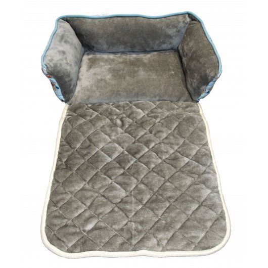 Protect your sofa or chair from pet hair or dirt with our Blanket bed. Front panel can be rolled up and secured in place with our side straps or laid out for maximum size and protection. This versatility makes this product great for cats and dogs of all sizes. The raised 3 sides give extra comfort and add security. This bed like the rest of our range uses a super soft inner plush and a cotton outer and remains machine washable at 30 for easy care.