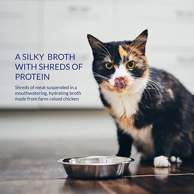 MADE WITH WHOLESOME INGREDIENTS YOU CAN TRUST: Every Inaba product is made with yummy high-quality ingredients, including farm-raised chicken and/or natural wild-caught tuna SAVORY AND SUCCULENT: The first ingredient is chicken broth made from 100% natural chicken, then we mix in succulent flakes of natural chicken plus tuna or salmon, giving your kitty four mouthwatering flavors to choose from TASTY TOPPERS: Top their meal with a delicious treat that is healthy and hydrating. Each pouch has 90% moisture and only 16 calories, so you can feel good about adding it to their bowl of bland, dry cat food FREE FROM THE BAD STUFF: Each serving is grain-free, preservative-free, carrageenan-free, and free from artificial colors, but we've added Vitamin E for your cat's immunity CONVENIENT COMPLEMENTS: These convenient individual pouches make a perfect side-dish or complement to your fur babies meal
