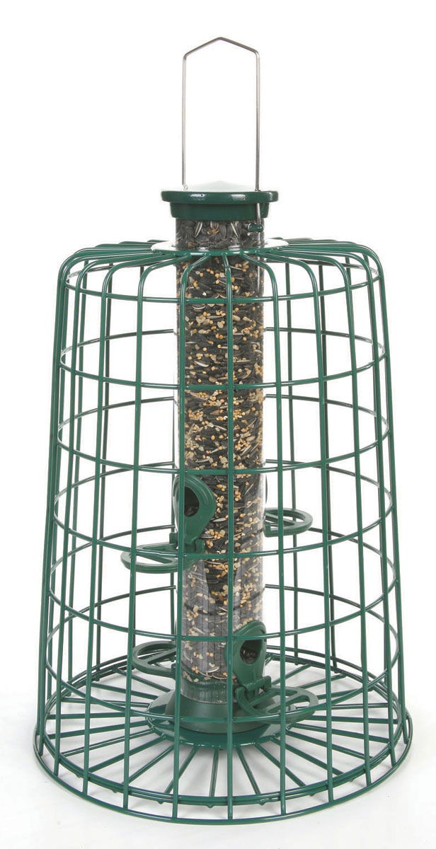This Feeder Guardian Contains The 2 Port Seed Feeder Made From Tough Powder-Coated Steel Construction. Offers Protection From Squirrels And Larger Birds. The Wider Cage Diameter Gives Improved Protection From Larger Birds Such As Pigeons And Gives Confidence To Smaller Birds When Feeding; The Straight Forward Design Makes These Easy To Dismantle, Clean And Re-Assemble