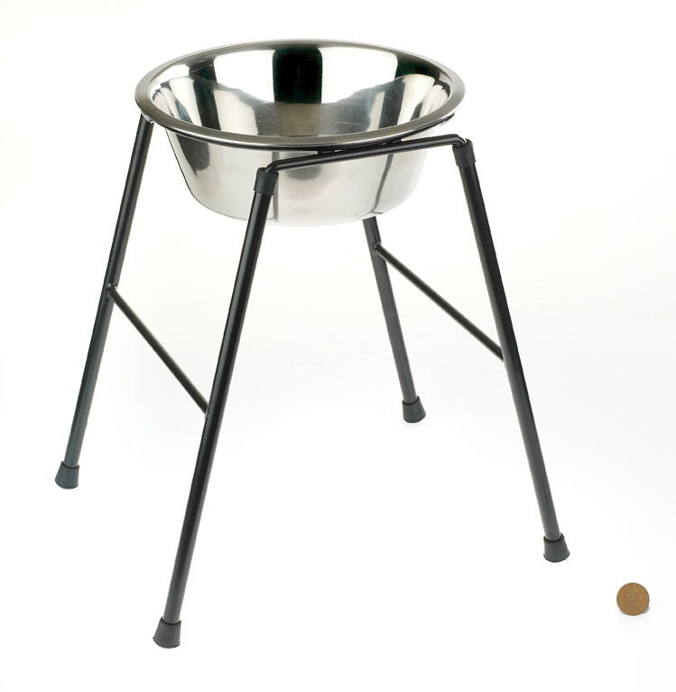From Classic's range of High Feeders which keep dishes off the floor and at a more convenient height for your pet to eat and easier for you to remove for filling and cleaning. Strong, stylish black enamelled framework with non slip black rubber feet holds either one or 2 stainless steel dishes - available in a range of options to suit your needs. High quality, stay bright stainless steel dishes are hygienic and dishwasher safe, stainless steel does not absorb food odours and these durable dishes will remain in good condition for many years use. This single feeder stand includes a 2.5 Litre dish and stands at an overall height of 370mm.