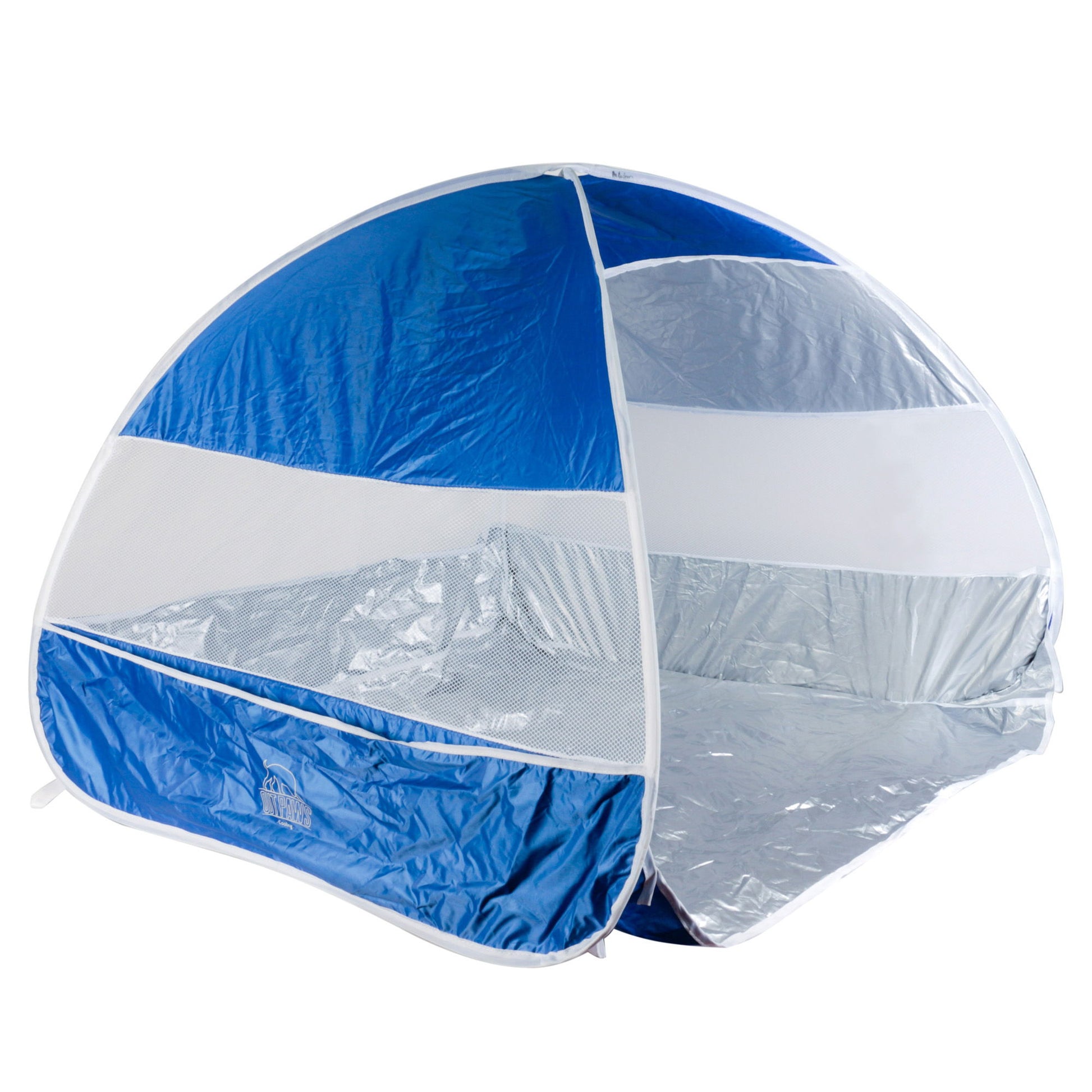 Our handy and portable pet shelter is easy to use, making a great accessory to give your dog a shady haven to stay cool during those hot and sunny days. It pops open in seconds - simply use the sturdy metal pegs to secure the open-front dog tent into the ground outside and keep it in place. Easily fold it away into the included bag to store when not in use. The generous size provides a cosy space for dogs of all breeds and sizes to curl up and relax during those long summer days.