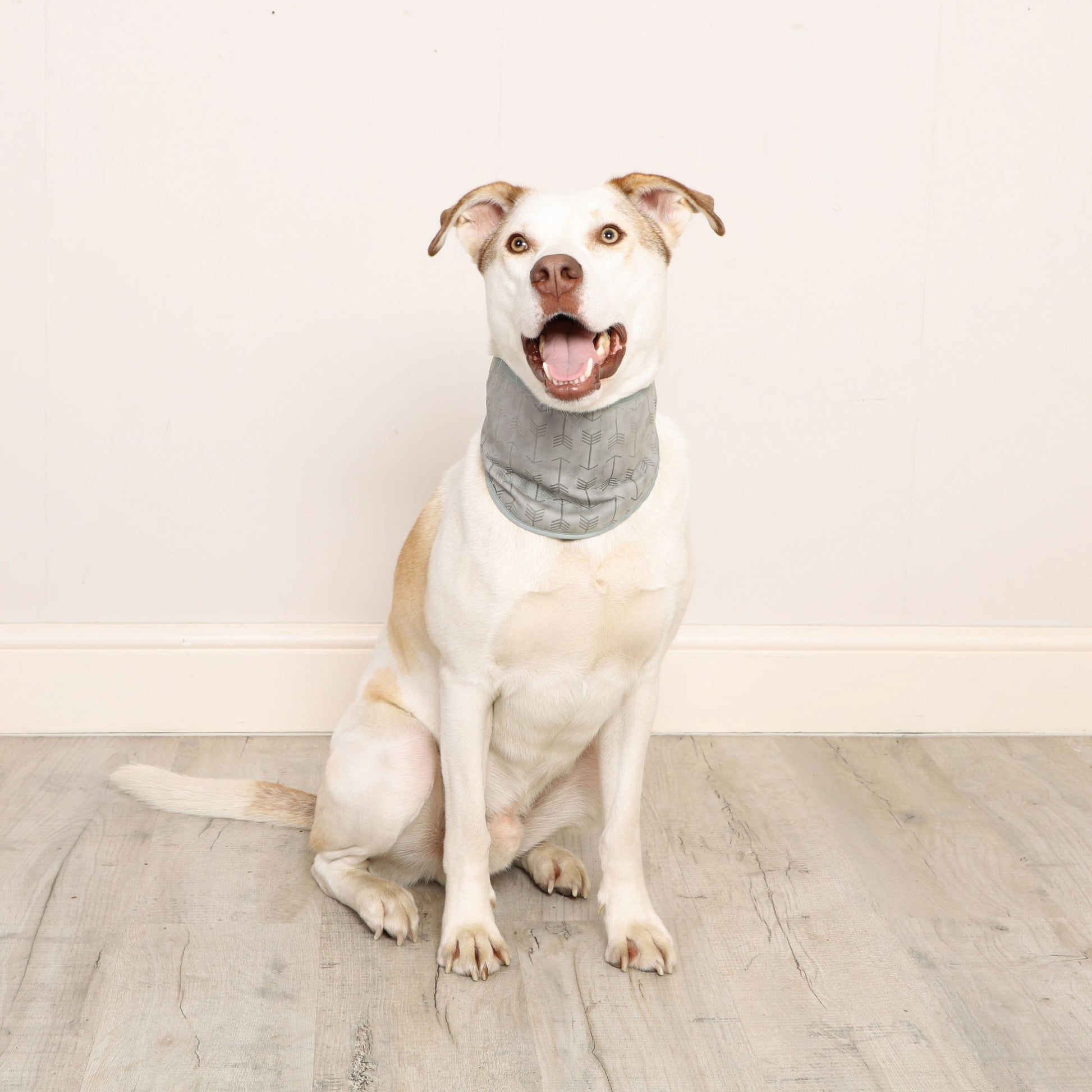 Easy to use, our cooling pet collar is a safe way to help combat overheating during hot days and long walks. As dogs can't sweat they pant to control their temperature, the hotter they get the harder they have to work to cool themselves down so sometimes they need extra help from us. To use submerge collar in cold water for around 1 minute, then wring out excessive water and it's ready to wear. The unique material has a special surface that allows liquid through to the highly absorbent inner, the bandana then retains moisture for hours no need for refrigeration. Each bandana comes with reusable plastic tube, before going on a long walk simply activate the collar, place back into the tube and throw into your bag for when you need it later. Available in 2 size to best suit your pet.