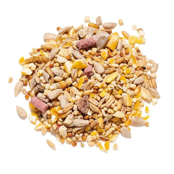 Ingredients: Cut Maize, Naked Oats, Pin Head Oat Meal, Sunflower Hearts, Red Millet, White Millet, Peanut Granules, Sultana/Raisins, Mealworms, Berry Suet Pellets, Blended Marine Oil.