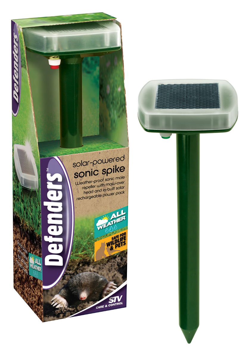 Stv757 Solar-Powered Mole Repeller Drives Off Moles Without Harm To Protect Lawns, Seed Beds And Seedling Plants. Built-In Solar Rechargeable Power-Pack Works Continuously Overnight And In Poor Light Conditions. Easy Set-Up, Weather Proof Housing And One-Touch Test Button.