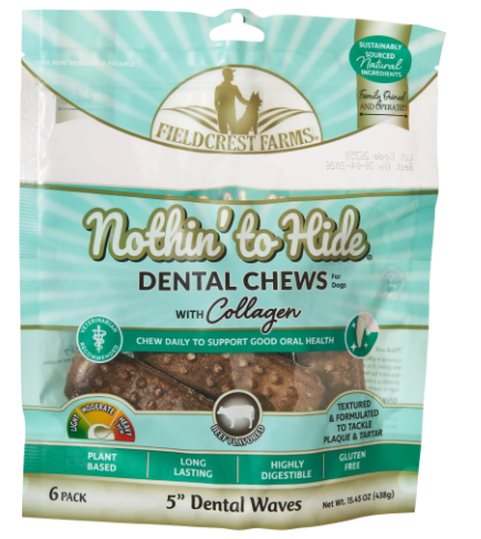Nothin’ to Hide Dental Chews are delicious, gluten-free and made with natural, plant-based, sustainably sourced ingredients. A multi-textured chew to help tackle tartar and plaque build-up and formulated to last.