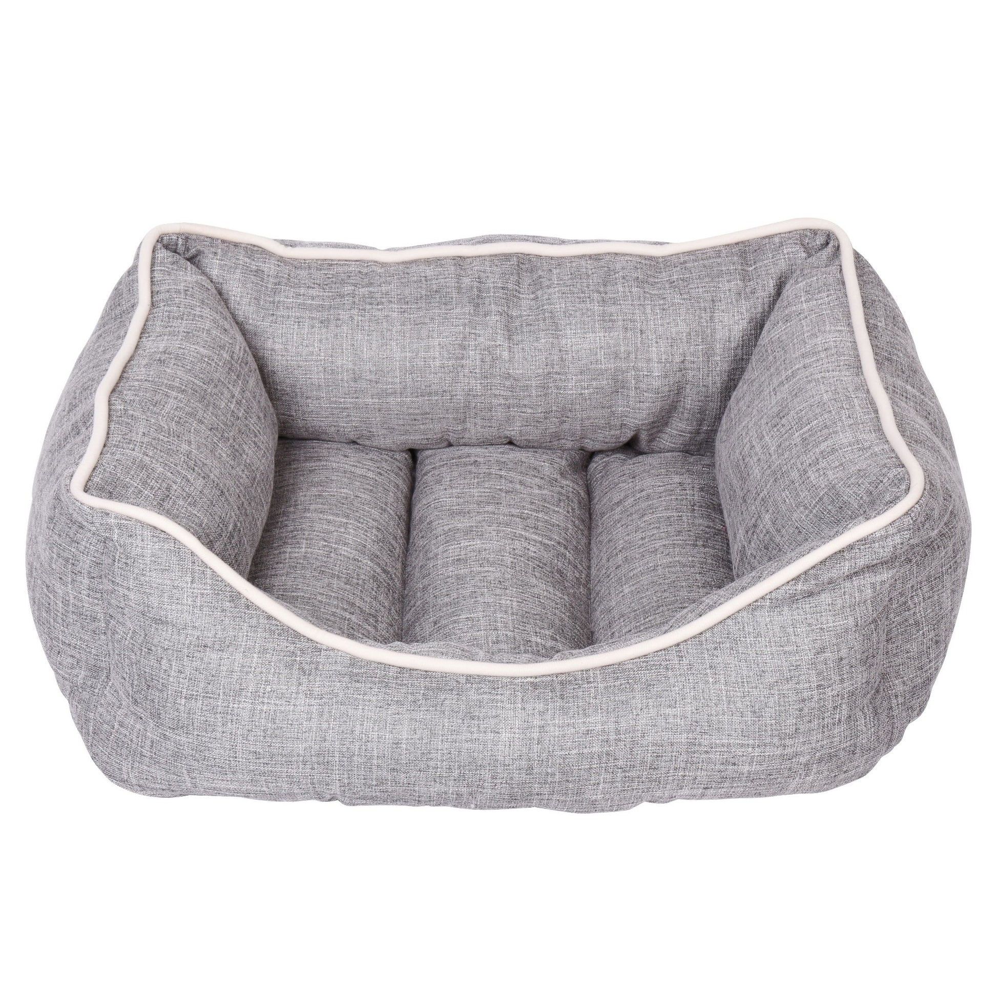 With a cosy plush inner cushion and deeply-stuffed walls our Dream Dog Box Bed makes for a luxurious siesta. A classic bed design loved by all breeds our Box bed features a contrast piping for a contemporary twist. The neutral colouration and complimentary faux fur ensures this piece can be used within bedroom, kitchen or lounge. Our bed is fully machine washable at 30 ° and has a non-slip base. Available in two sizes, we suggest that this bed is most suited to cats and small & medium breed dogs.