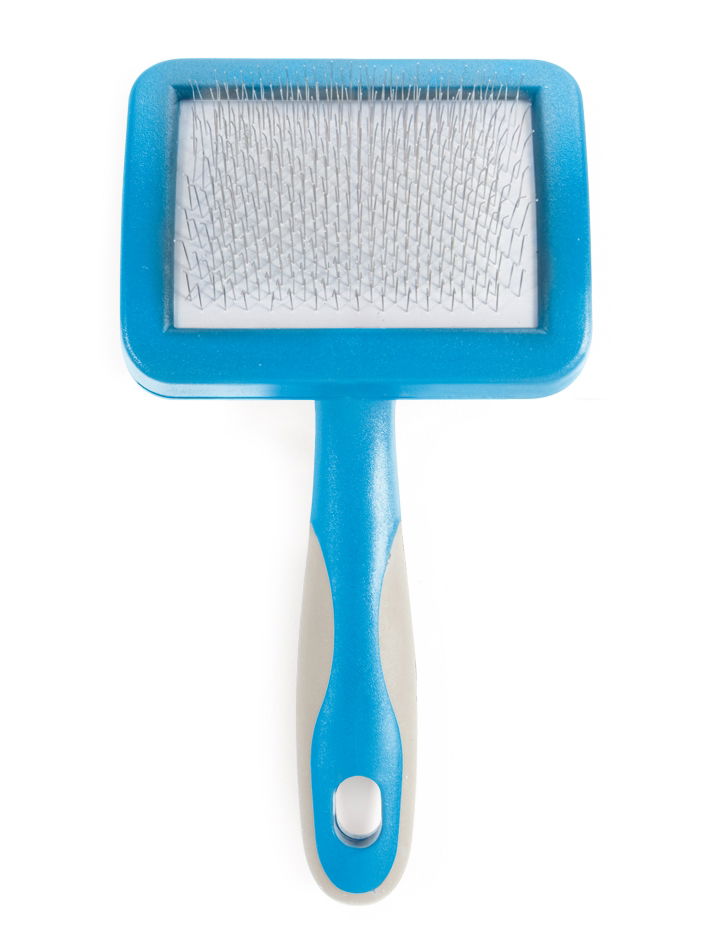 Ancol Universal Small Slicker Brush For Dogs. This Slicker Brush Is Designed With A Curved Body For Effective Grooming For Longer Coated Dogs. The Ergonomic Handle Gives Comfort While Grooming.