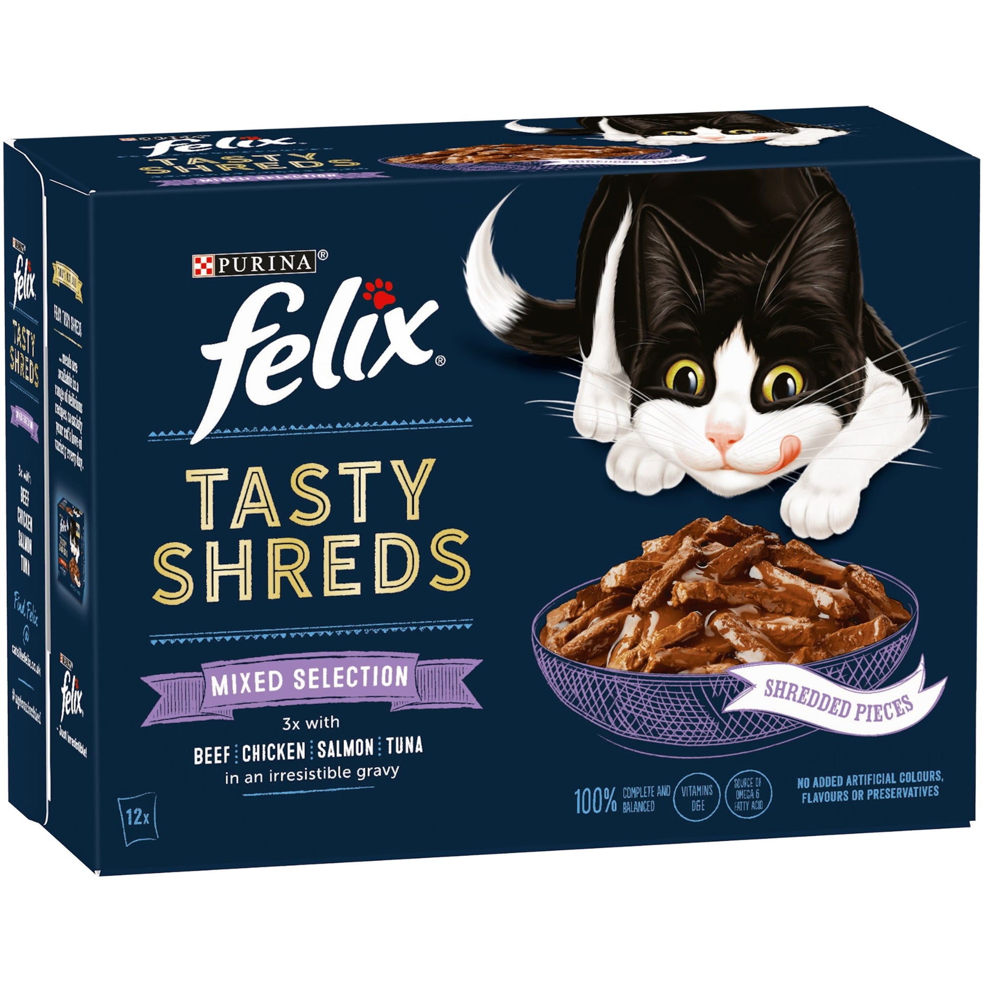 FELIX Tasty Shreds are tender and irresistible shredded pieces in a tasty gravy your cat will love!