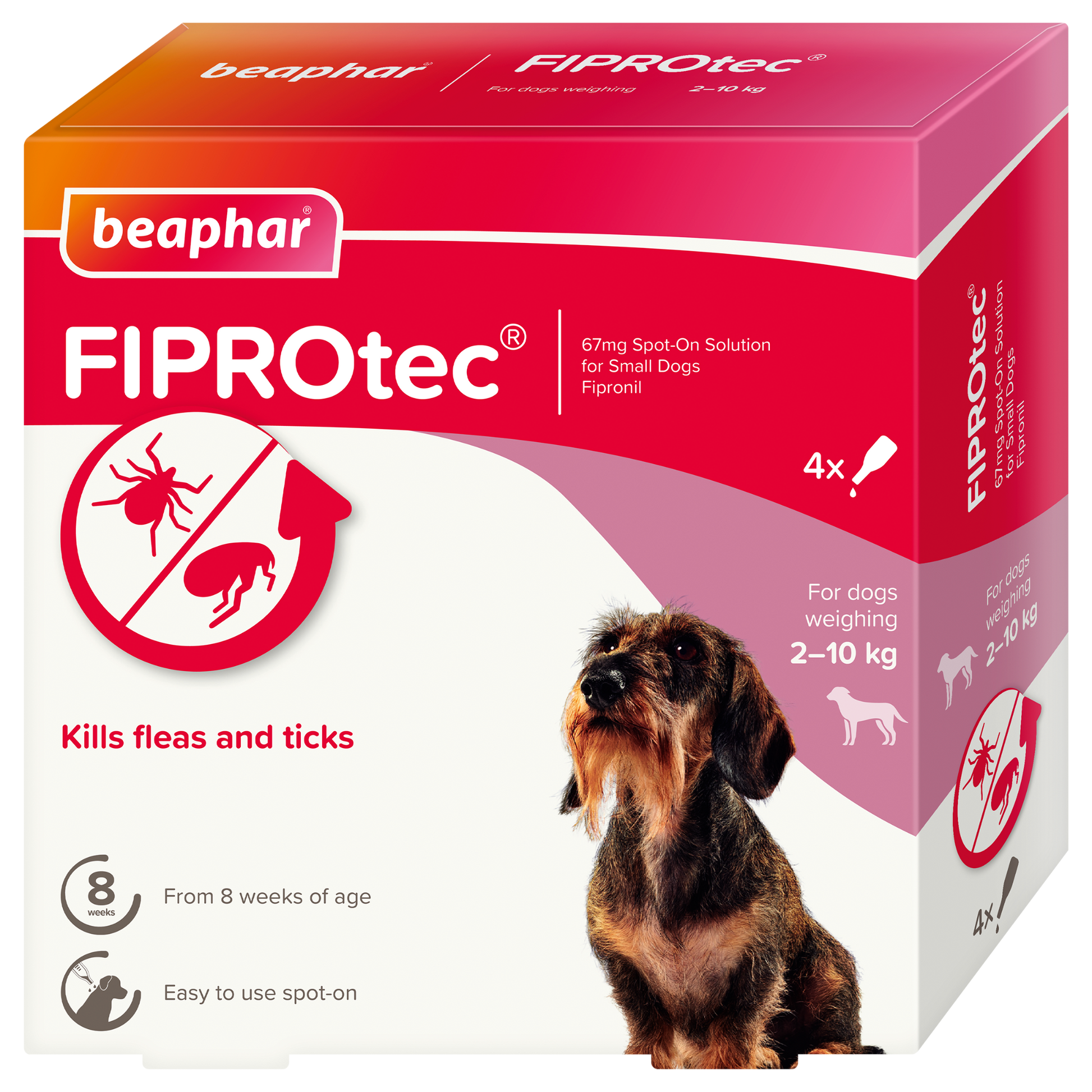 Beaphar FIPROtec Spot-On for Small Dogs is an effective and affordable veterinary strength medicine to control fleas and ticks on your dog. Containing the well-known active ingredient fipronil, Beaphar FIPROtec Spot-On for Small Dogs effectively kills fleas for up to five weeks and kills ticks for up to four weeks. Suitable for dogs from 8 weeks of age and weighing 2-10kg. All pets are at risks from fleas, even dogs that don't go outside very much, as we can bring them in on our clothes. It is important to establish a regular flea control routine for your pets and your home. 95% of the flea's lifecycle is in the home. When tackling a flea problem, in addition to treating your pet always use a household insecticide, such as Beaphar FLEAtec or Beaphar Extra Long Lasting Household Flea Fogger for your home.