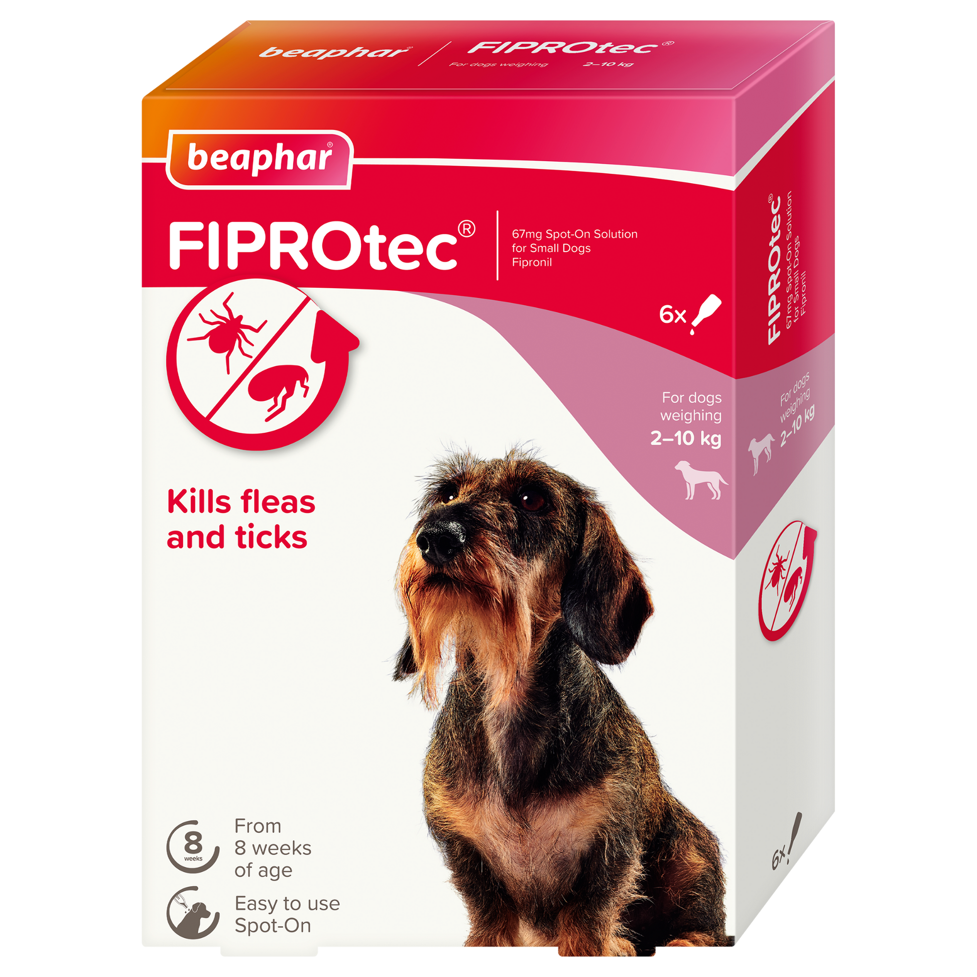 Beaphar FIPROtec Spot-On for Small Dogs is an effective and affordable veterinary strength medicine to control fleas and ticks on your dog. Containing the well-known active ingredient fipronil, Beaphar FIPROtec Spot-On for Small Dogs effectively kills fleas for up to five weeks and kills ticks for up to four weeks. Suitable for dogs from 8 weeks of age and weighing 2-10kg. All pets are at risks from fleas, even dogs that don't go outside very much, as we can bring them in on our clothes. It is important to establish a regular flea control routine for your pets and your home. 95% of the flea's lifecycle is in the home. When tackling a flea problem, in addition to treating your pet always use a household insecticide, such as Beaphar FLEAtec or Beaphar Extra Long Lasting Household Flea Fogger for your home.