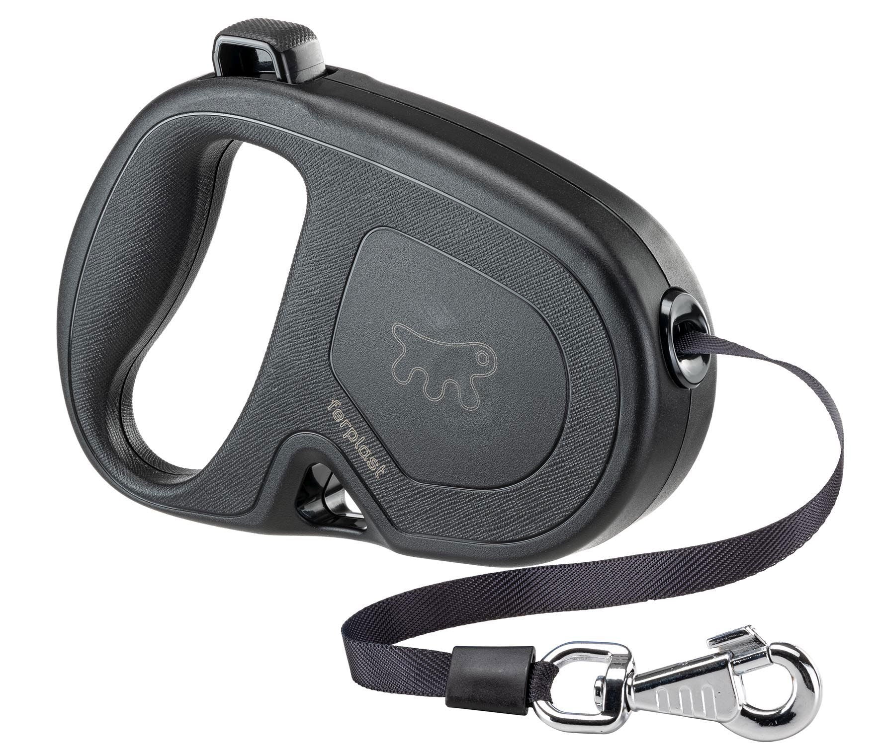 Flippy One by Ferplast is the range of extendable leashes for dogs suitable for multiple uses.The extendable leashes allow your dog ample freedom of movement thanks to the extendable cord / tape that rewinds automatically, following its movements. The ergonomic button with 3 functions - free running, momentary lock and permanent lock of the cord/ tape at the desired length - guarantees reliability and precision in the command. They are available with a sturdy nylon cord or with an extendable nylon tape. All models have been designed to be resistant to the stresses of the dog and to tearing, and are subjected to numerous and rigorous quality tests to ensure absolute safety. The range of Flippy One Cord leashes includes different dimensions designed for dogs of different sizes and builds: Mini model, Small with a cord length of 4.5 meters suitable for medium dogs up to a maximum of 12 kg in weight, Medium with an extendable cord up to 5 meters for medium-large dogs and a maximum weight of 20 kg, Large with a cord length of 5 meters for large dogs up to 35 kg in weight.