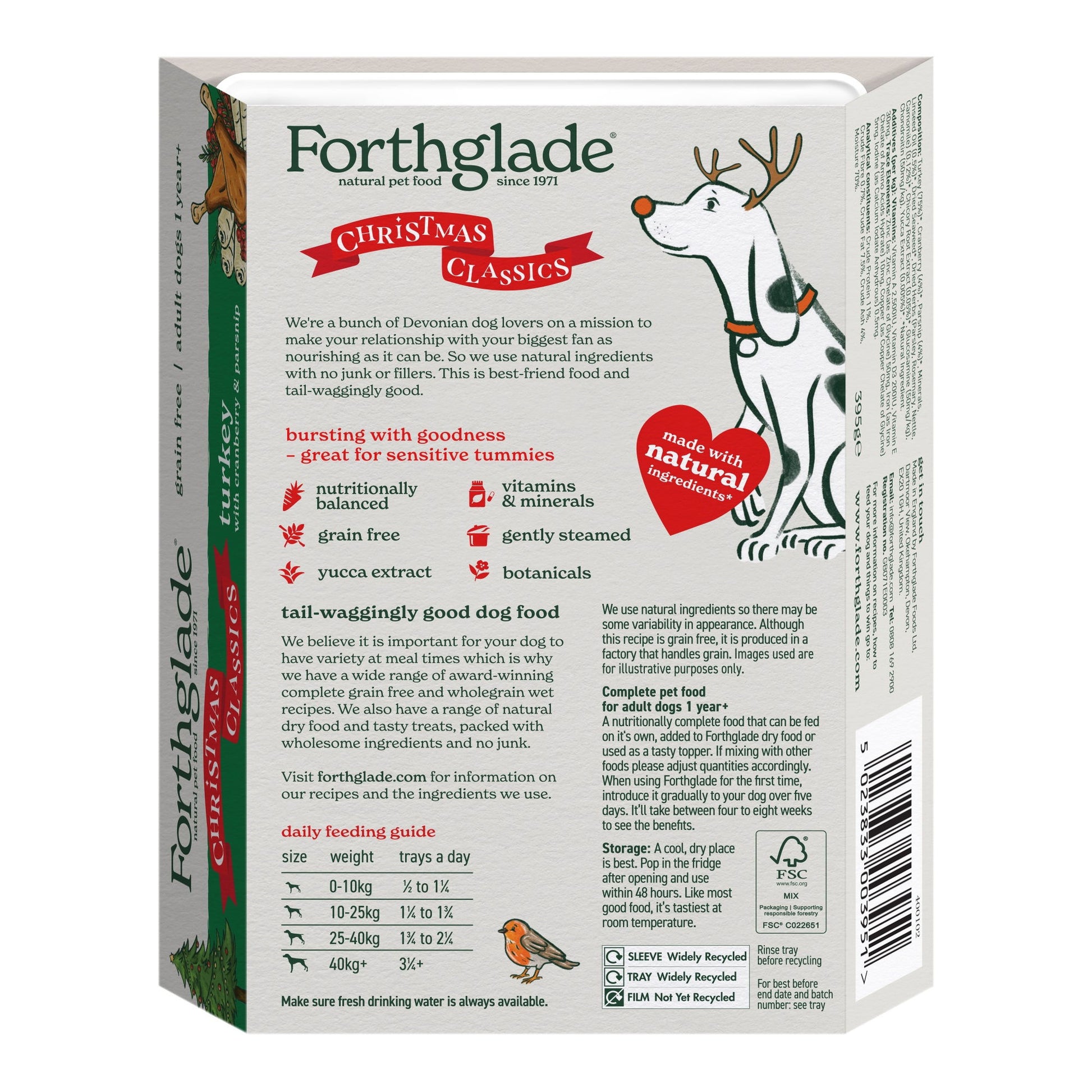 Forthglade's original limited edition festive meal for adult dogs contains 75% turkey along with cranberry & parsnip, and is designed to be sensitive on even the most sensitive of tummies. Gently steamed to retain the goodness of the ingredients, you'll be able to share the festive cheer without the worry of an upset tummy. It's also grain free meaning it's perfect for dogs who need a hypoallergenic diet.
