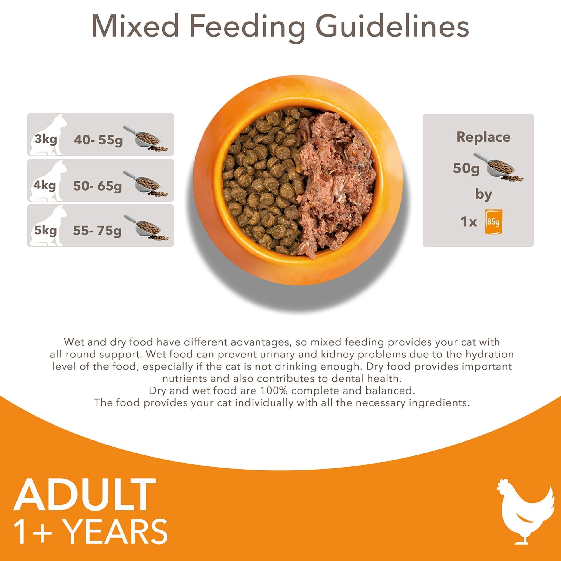 Iams Cat Food-Rich In Chickena Complete And Balanced Maintenance Cat Food For Adult Cats.[1+] Years Specific Product Benefits:* Best Fibre Source Promoting A Healthy Gut And Small Stool Volume* Helps Maintain Urinary Tract Health* Healthy Skin And Coat; Contains A Balance Of Omega-6 To Omega-3 Fatty Acids* Excellent Nutrient Absorption For Optimal Use Of All Ingredientsanalysis: % Per Kg Protein 32.5 Oil And Fats 21.5 Ash 5.9 Fibre 1.80 Moisture 8.0 Calcium 1.00 Phosphorus P 0.93 Magnesium 0.095 Vitamin A 8100 Iu Vitamin D3 1250 Iu Vitamin E 70 Mg Copper 30 Mg Energy * 18.8Mj/Kg 4483Kcal/Kg* Utilisable Energy Per Kg Of Food No Colorants, Flavourings Or Preservatives Added. Iams Cat Food Rich In Chicken Is A Complete And Balanced Food And Does Not Require Any Supplementation.Ingredients Iams Chicken:Chicken (>26%), Maize, Wheat, Animal Fat, Poultry Meal, Fish Meal, Poultry Digest, Dried Whole Egg, Dried Beet Pulp, Potassium Chloride, Brewer'S Dried Yeast, Dl-Methionine, Sodium Chloride.Feeding Guidelines: Cat Size Body Weight G/Day Kg Small 2-3 20-35 Meduim 3-4.5 35-50 Large 4.5-7 50-75