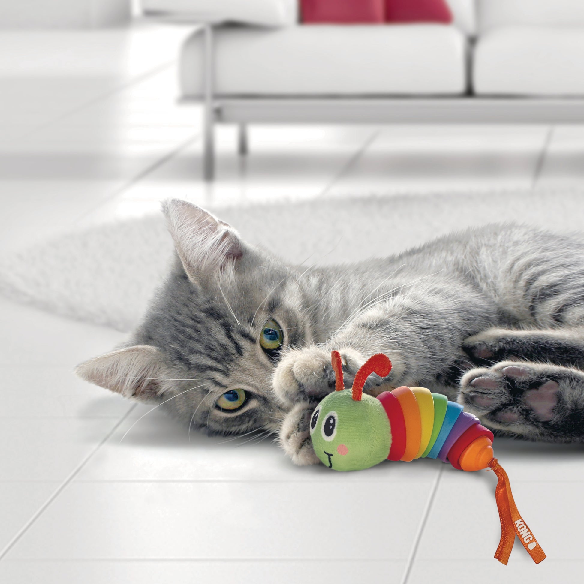 •Connected colorful discs wiggle, spin, and clack for added excitement •Crinkle material and catnip in the head spark energetic rounds of fun •Ribbon tail and antennae encourage chasing, swatting, and batting •Unique clacking noise adds fun to play •Solo play toy for various playstyles 92% PP- Polypropylene, 7% Polyester, 1% Catnip