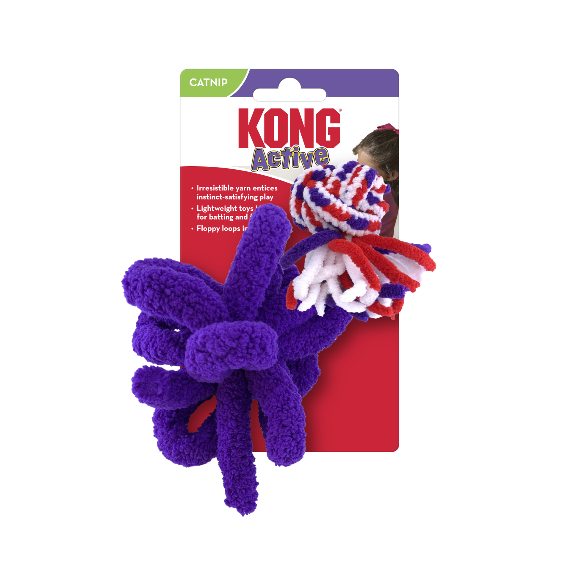 KONG Cat Active Rope entices kitties with their all-time favourite: YARN! These lightweight toys satisfy batting, flinging and capturing instincts. Floppy loops are ideal for dragging, while KONG Premium North American Catnip inside the ball keeps cats playing for tons of healthy exercise.