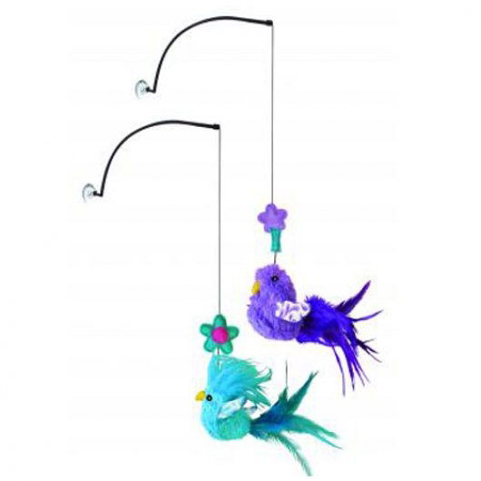 KONG Active toys promote healthy exercise and fulfill cats' instinctual desires to chase, hunt and capture. The KONG window Teaser affixes to smooth surfaces, creating an active challenge for cats, even when you're not available to play. Each toy contains KONG Premium North American Catnip, bright feathers and a crinkle sound for added stimulation.