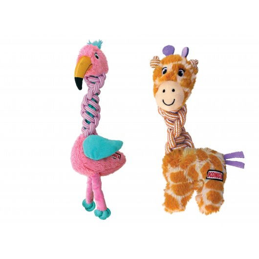 KONG Knots Twists’ long braided neck satisfies thrashing instincts with an irresistible braid of durable cotton rope dogs love to chew. Squeaker keeps play going while minimal stuffing means easy cleanup for an instinct-satisfying pal that’s both soft and durable. Plus, chewing on rope helps clean teeth.