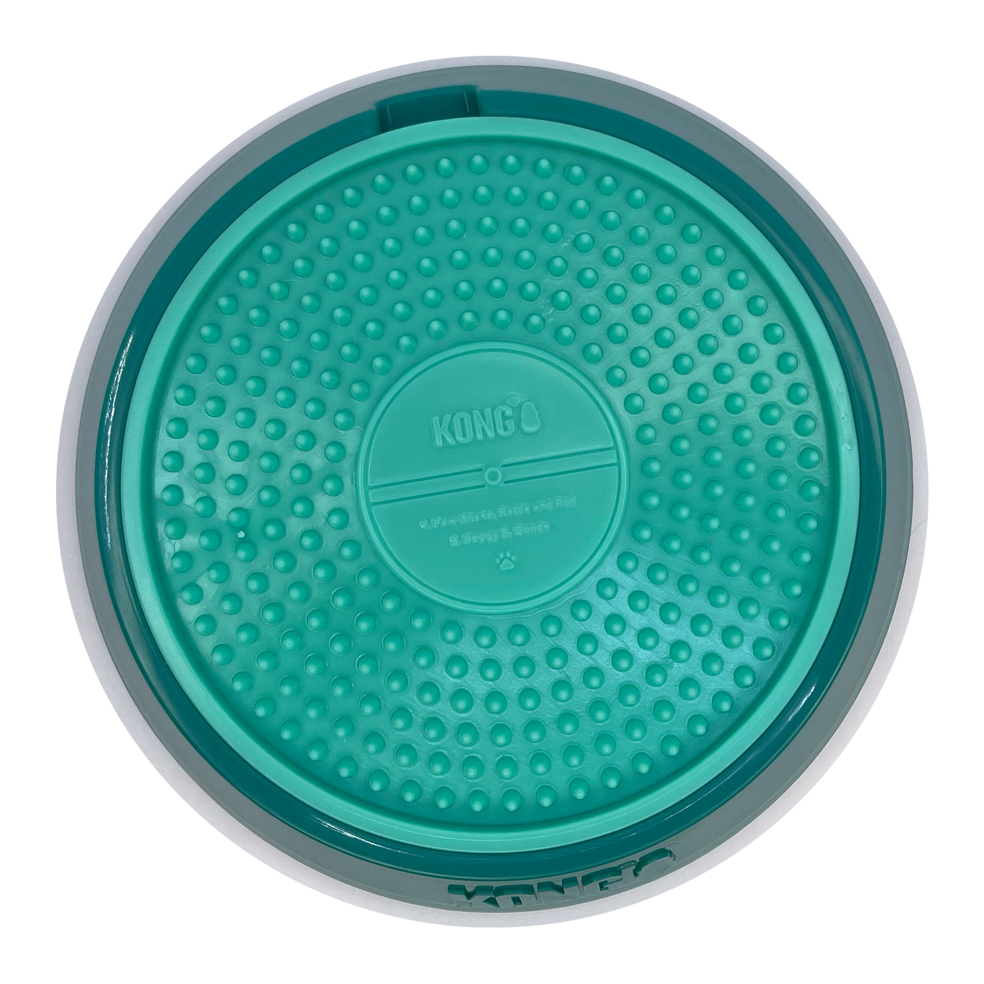 KONG Licks Spinz’ rotating, textured pad holds food or treat paste, inviting DJ K9 to lick, releasing happy hormones as he rocks out. Double-sided pad offers two textures for enriching variety (as well as multiple tracks: “I Wanna Hold Your Paw†and “Doggy Be Goodâ€) and is removable for easy cleaning. Plus, getting down with this turntable cleans dogs’ tongues, promoting dental health and fresh breath. Non-skid base holds toy in place.