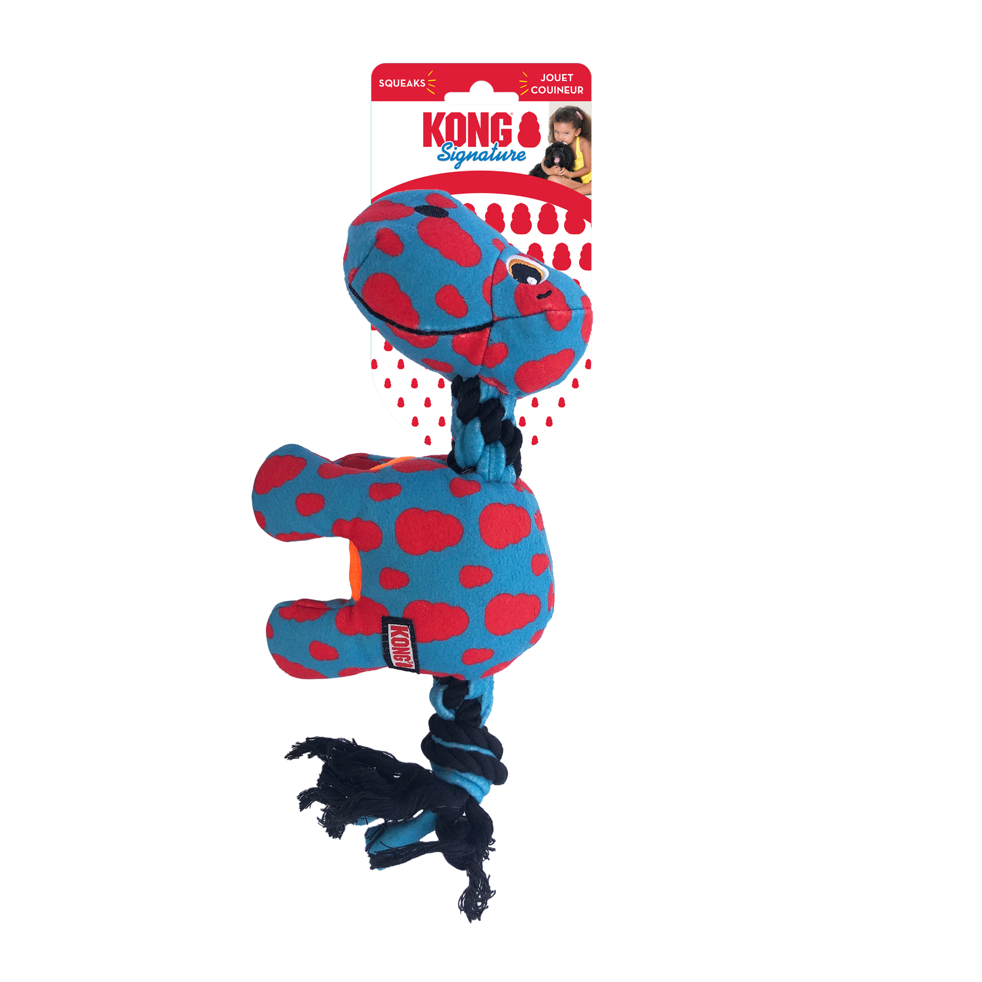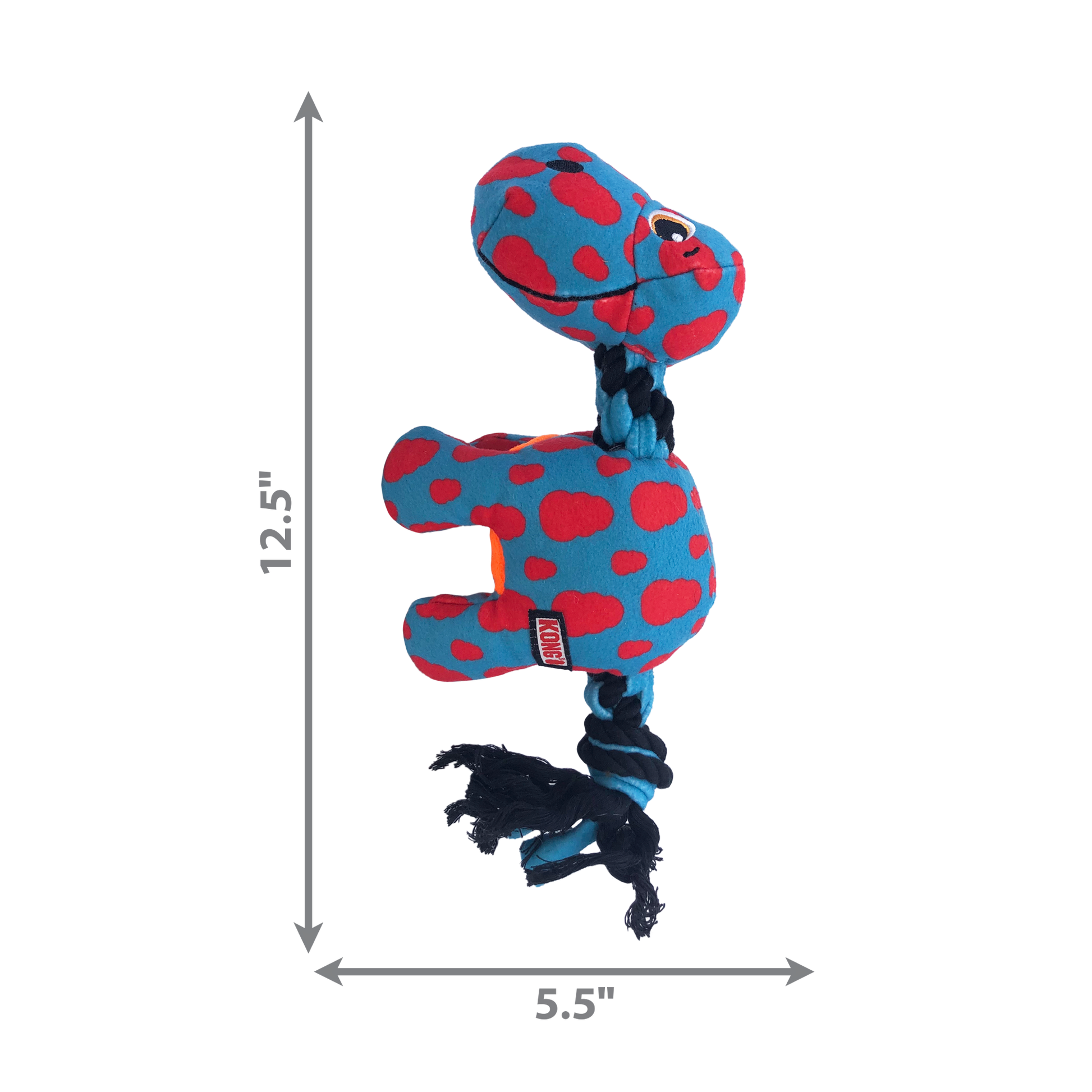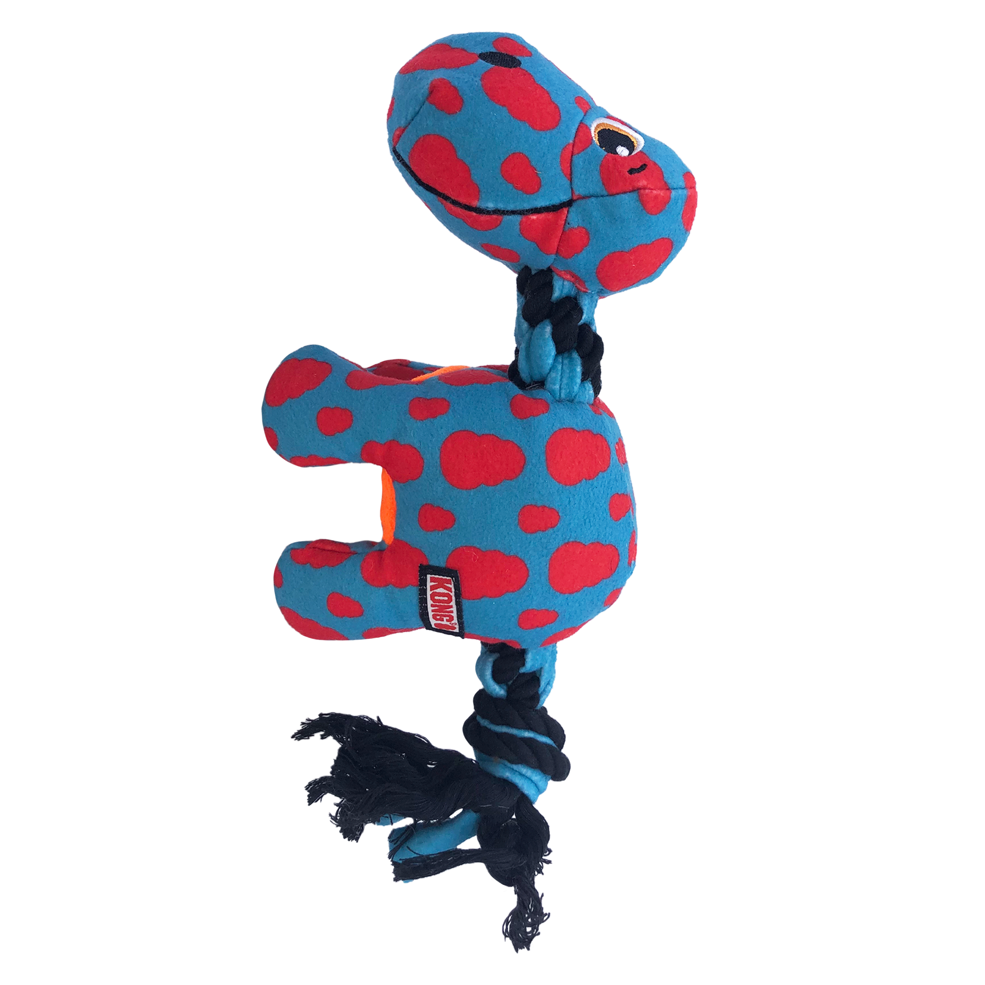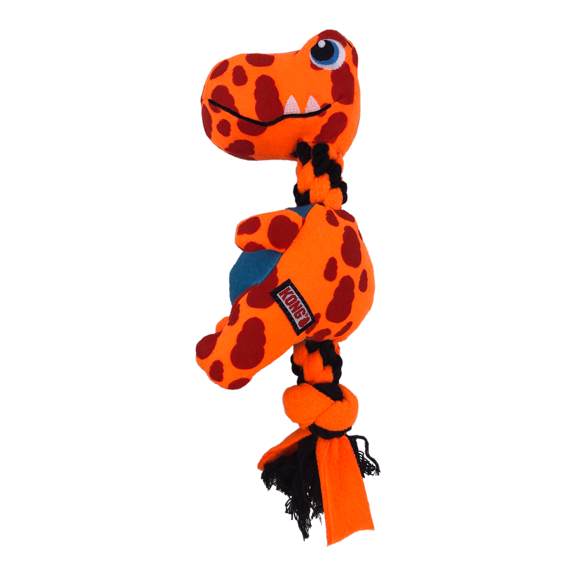 KONG Signature Dynos have a stretchy, strong fleece rope spine from head to tail, boosting their strength during tug-and-shake adventures. Soft, floppy bodies invite instinct-satisfying shaking and tugging while their mighty squeaks fuel long bouts of Jurassic play.