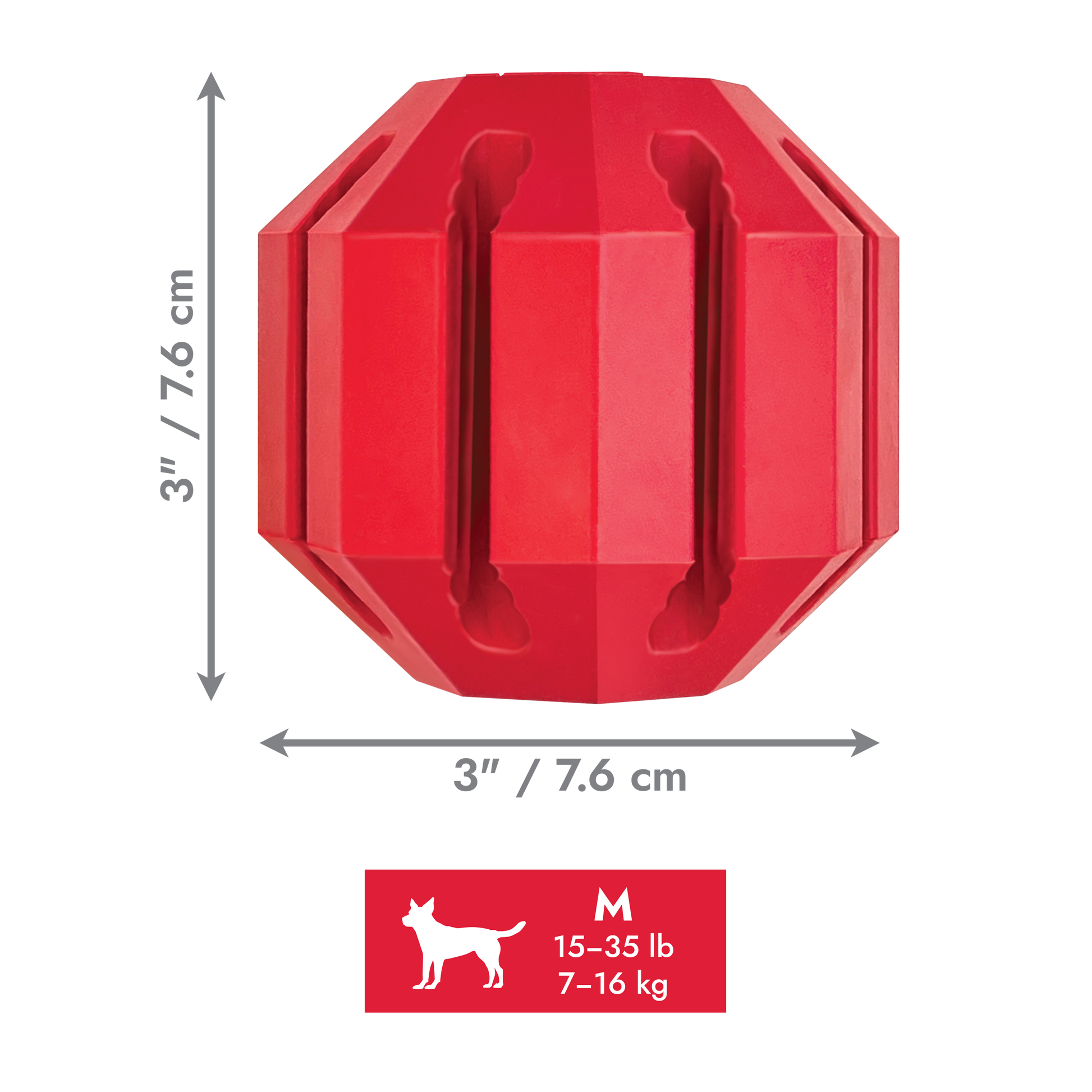 Promotes healthy teeth and gums . Stuff with treats, pastes or peanut butter . Fun to chase and cleans teeth . Made in the USA. Globally Sourced Materials. . 100% Rubber (Natural)