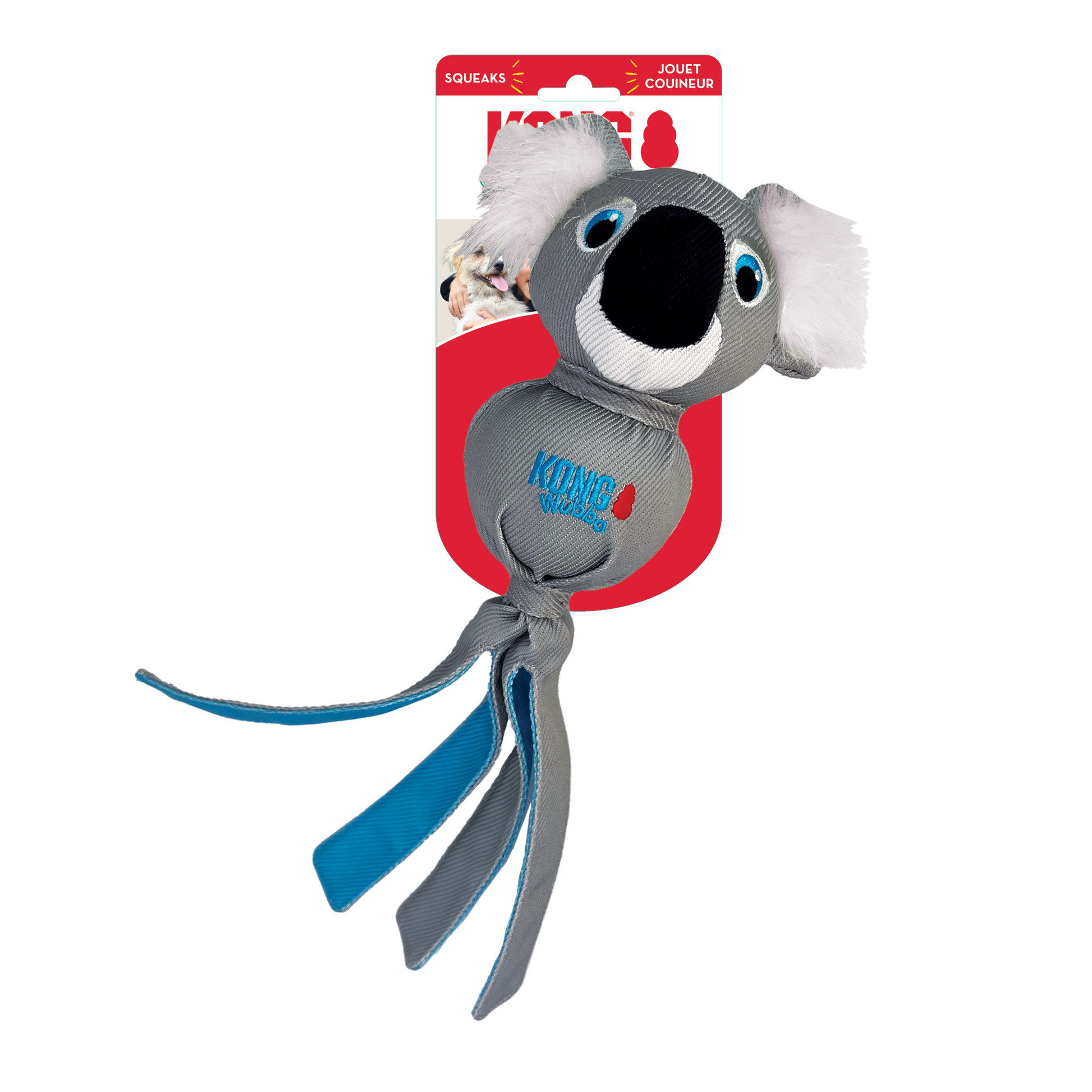 KONG Wubba Zoo turns playtime into an instinct-satisfying shaking safari with exotic animal pals whose long floppy tails make thrashing even more exciting. Squeaker in the body prolongs play. Reinforced material delivers long-lasting fetching, tugging and shaking fun with minimal stuffing for less mess. Ideal for interactive or solo adventures.