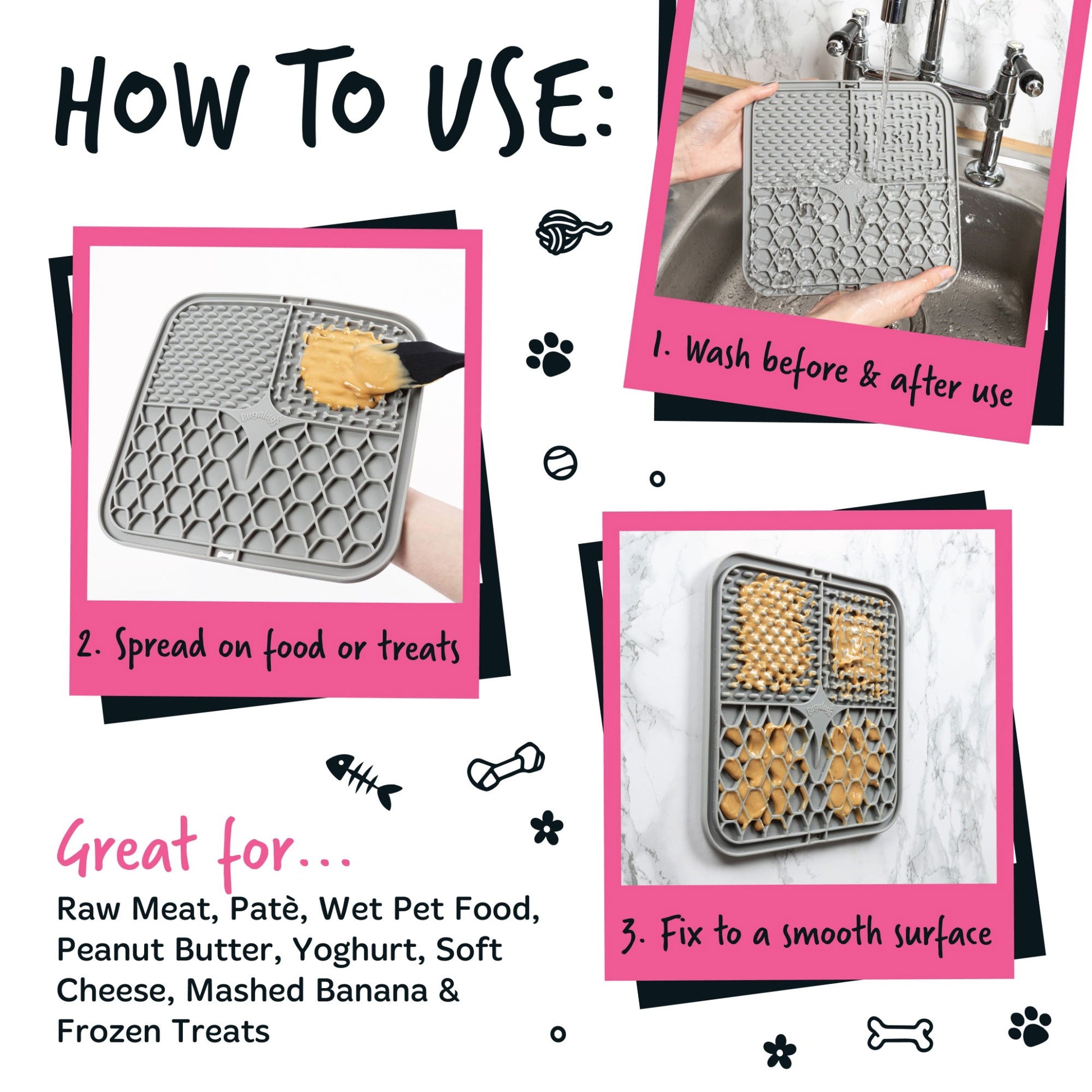 ? Boredom breaker to keep your pet entertained ? Makes bath time & grooming easier for you and your pet ? Stimulates saliva production to aid digestion ? Promotes healthier teeth & gums ? Reduces bloat risk by slowing down feeding ? Perfect for a quick treat, reward or snack ? Helps to relieve stress & anxiety ? Aids relaxation for your furry friends ? Unique textures for increasing levels of difficulty