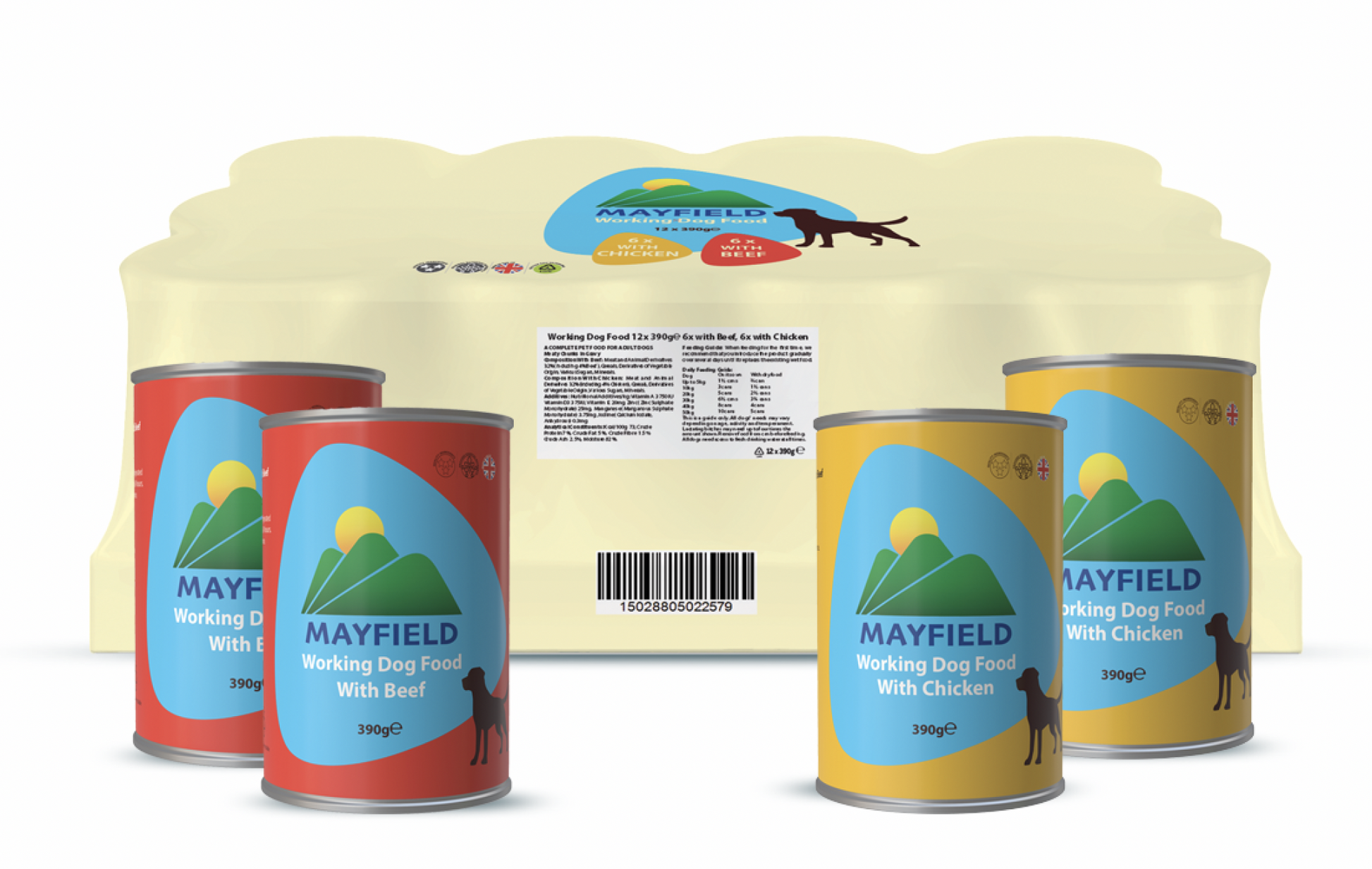 A complete and balanced delicious meal specially formulated for working dogs. Mayfield working dog food can be fed as a complete meal or with a dry/kibble mixer as part of your dog’s daily diet. Best served at room temperature. Once opened, keep refrigerated and use within 2 days. Please make sure there is plenty of fresh, clean water available.