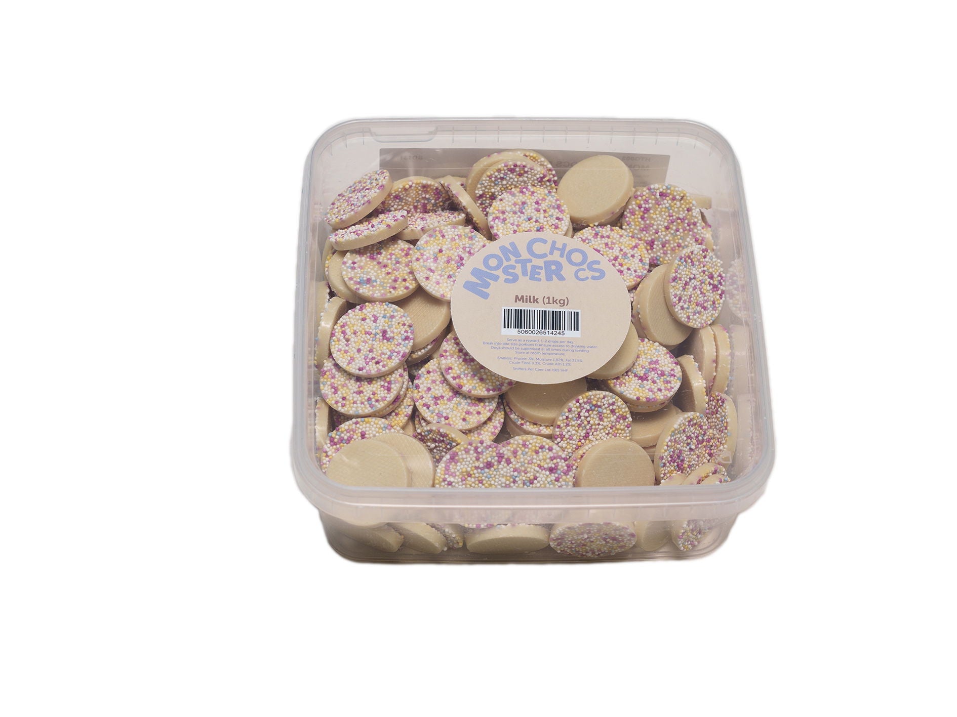 Rainbow chocs make the ideal treat for all dogs. The white chocolate discs are covered with hundreds and thousands.