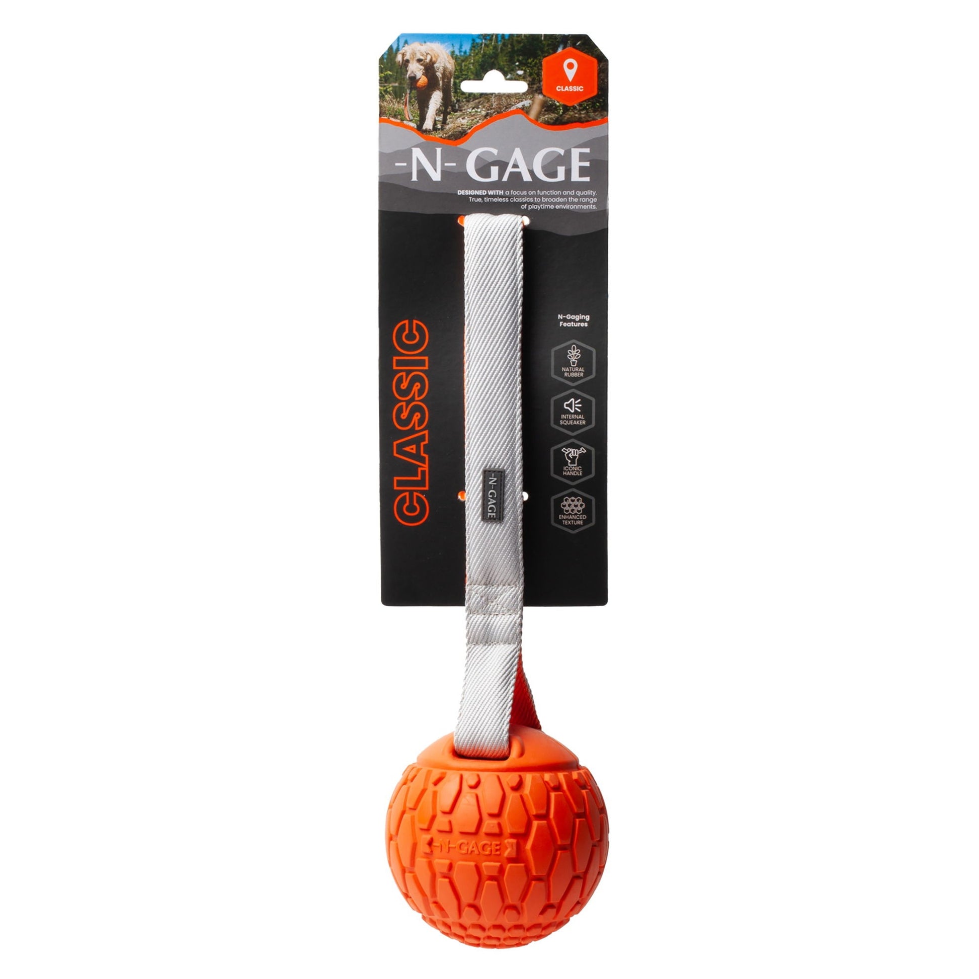 N-Gage Handler Jumbo Dog Toy. High quality squeaker rubber ball, reflective stretch handle leash.