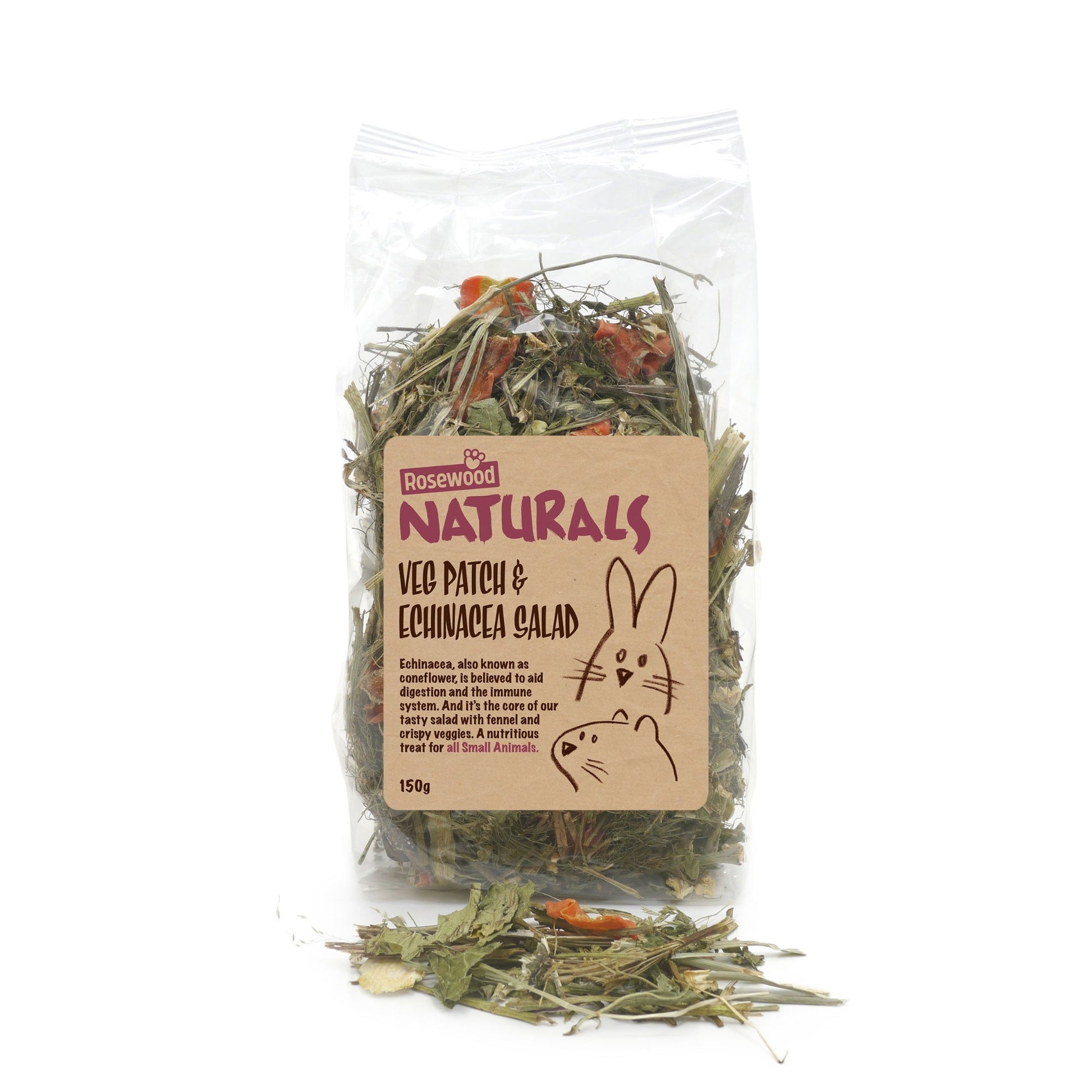 Echinacea, also known as coneflower, is believed to aid digestion and the immune system. And it’s the core of our tasty salad with fennel and crispy veggies Supplied in SRP For all small animals Echinacea (30%), fennel plant (30%), pea flakes (20%), celery (10%), carrot (10%) (all as dried ingredients).
