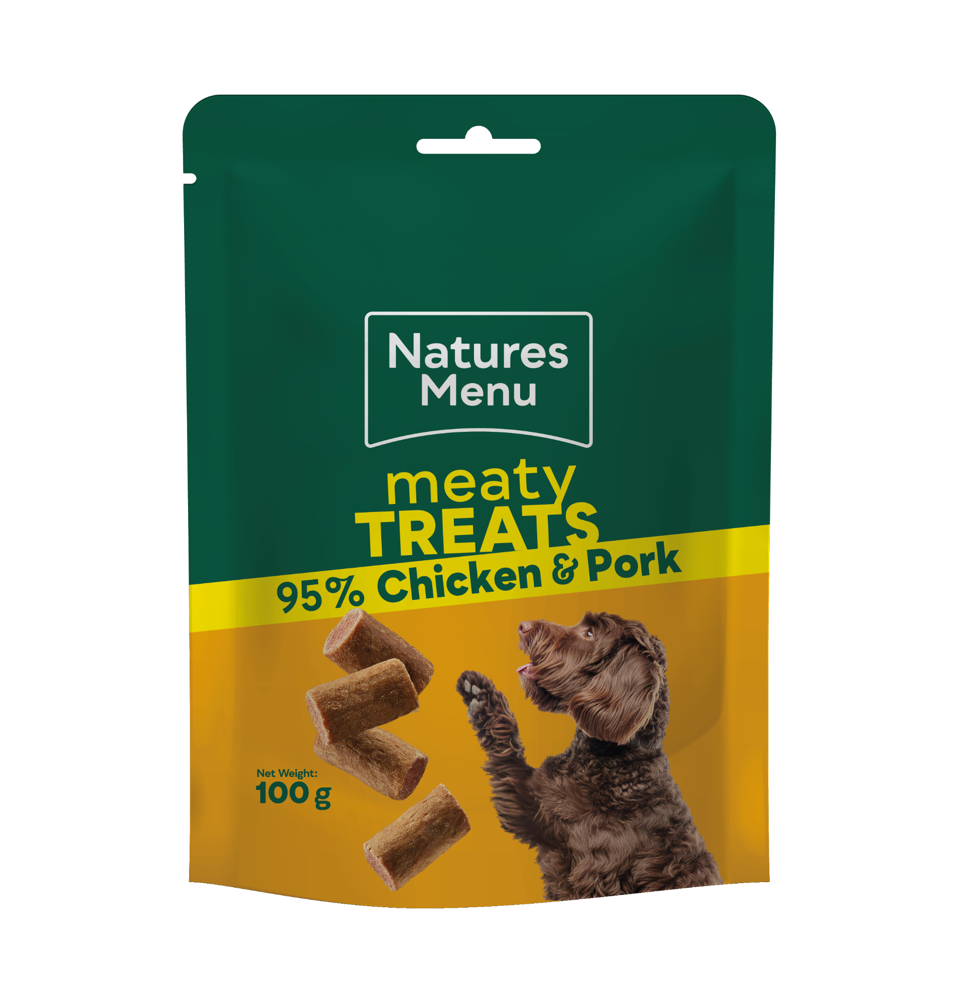 Our classic recipes are made with 95% beef and pork. An irresistible reward for dogs. Made from a meaty blend of beef and pork, a recipe that contains no gluten, no artificial flavours or colours. Comes in a handy resealable pack.
