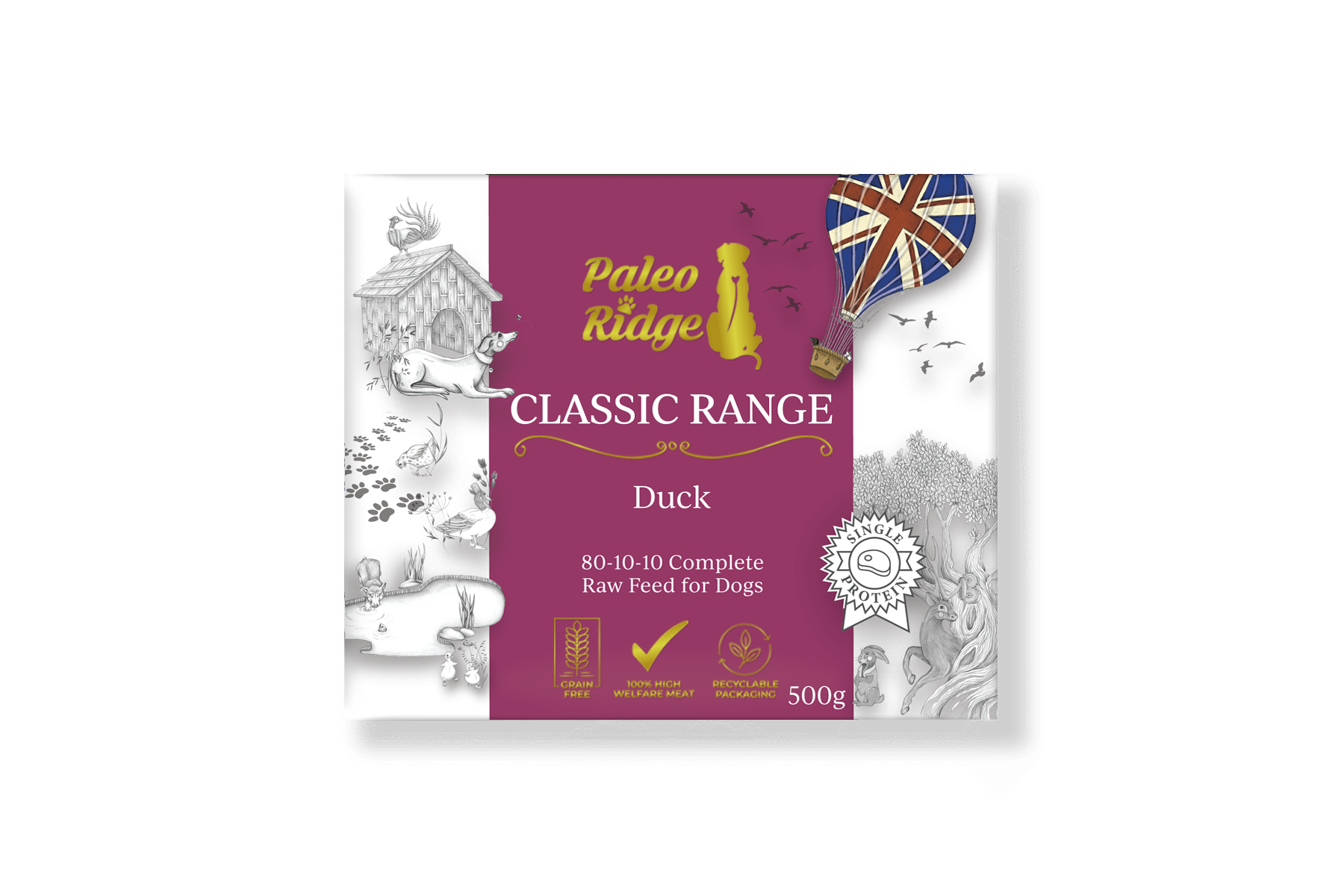 Classic Duck is a single-protein, 80:10:10 complete raw dog food, which will help your dog sustain a healthy and well-balanced diet. * Single protein *Grain free *Hypoallergenic *Tripe Free * Suitable for puppies *Suitable for seniors *Great for Weight Gain *Recyclable packaging *Healthy skin & coat *Oral hygiene *Reduced allergies *A strong healthy immune system