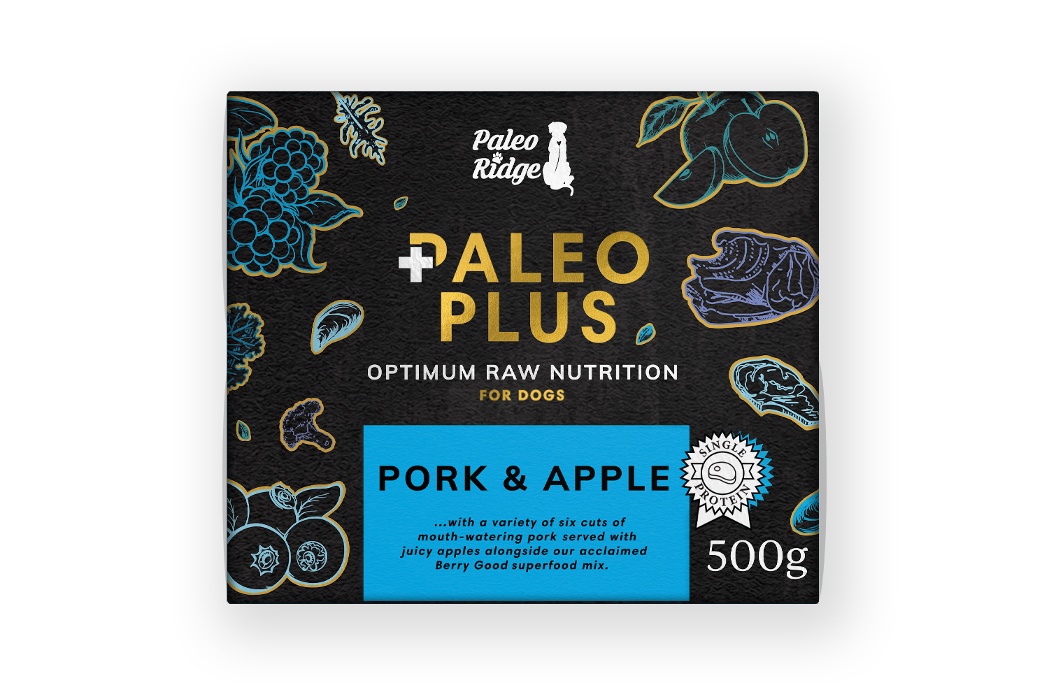 Our Paleo Plus Pork & Apple has been carefully formulated, using the very latest scientific and nutritional research. Hand made with 95% High welfare, outdoor reared and grass-fed meat, offal and bone with a 5% unique blend of sustainably sourced natural superfoods. Paleo Plus offers exceptional canine nutrition to keep your dog’s performing at their best. *Great for fussy dogs *Low in fat *Single protein meal *Great for sensitive tummies *Grain free *Hypoallergenic * Suitable for puppies *Suitable for seniors *Recyclable packaging *Healthy skin & coat *Oral hygiene *Reduced allergies *A strong healthy immune system