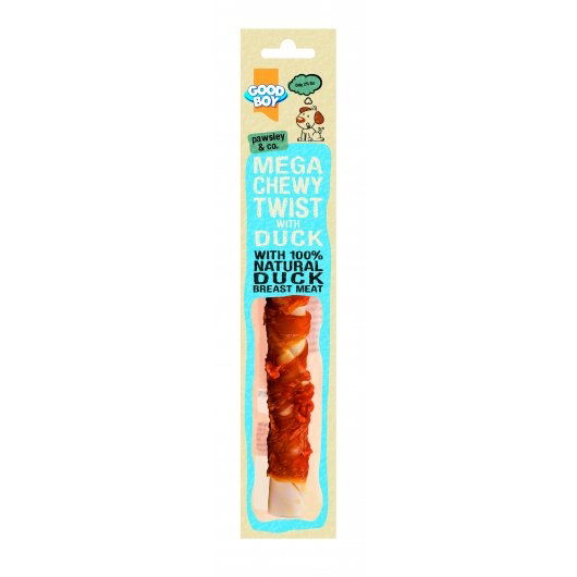 This Mega Chewy Twist with Duck is made with super duper tasty 100% natural duck breast meat so is sure to become one of your dog’s favourite treats. As well as being lip smackingly tasty it's full of natural goodness too as they are;