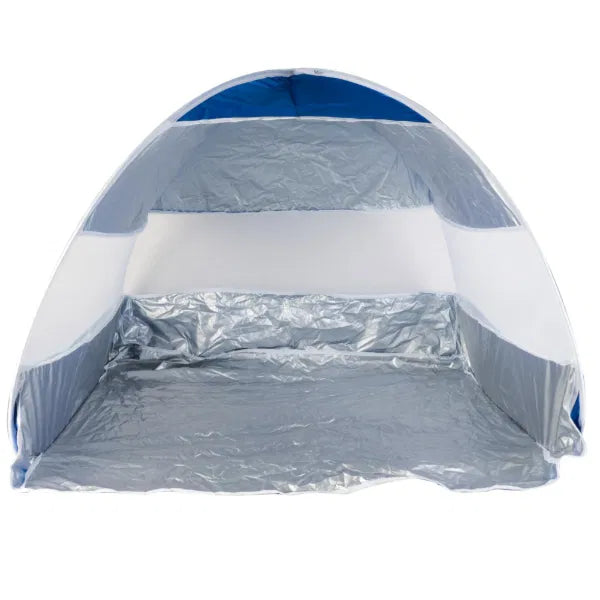 Our handy and portable pet shelter is easy to use, making a great accessory to give your dog a shady haven to stay cool during those hot and sunny days. It pops open in seconds - simply use the sturdy metal pegs to secure the open-front dog tent into the ground outside and keep it in place. Easily fold it away into the included bag to store when not in use. The generous size provides a cosy space for dogs of all breeds and sizes to curl up and relax during those long summer days.