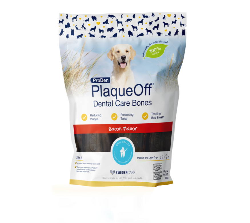 Dental Care Bone containing the proven ProDen PlaqueOff® Powder ingredient. Helps keep teeth clean, reduce tartar and freshen breath.
