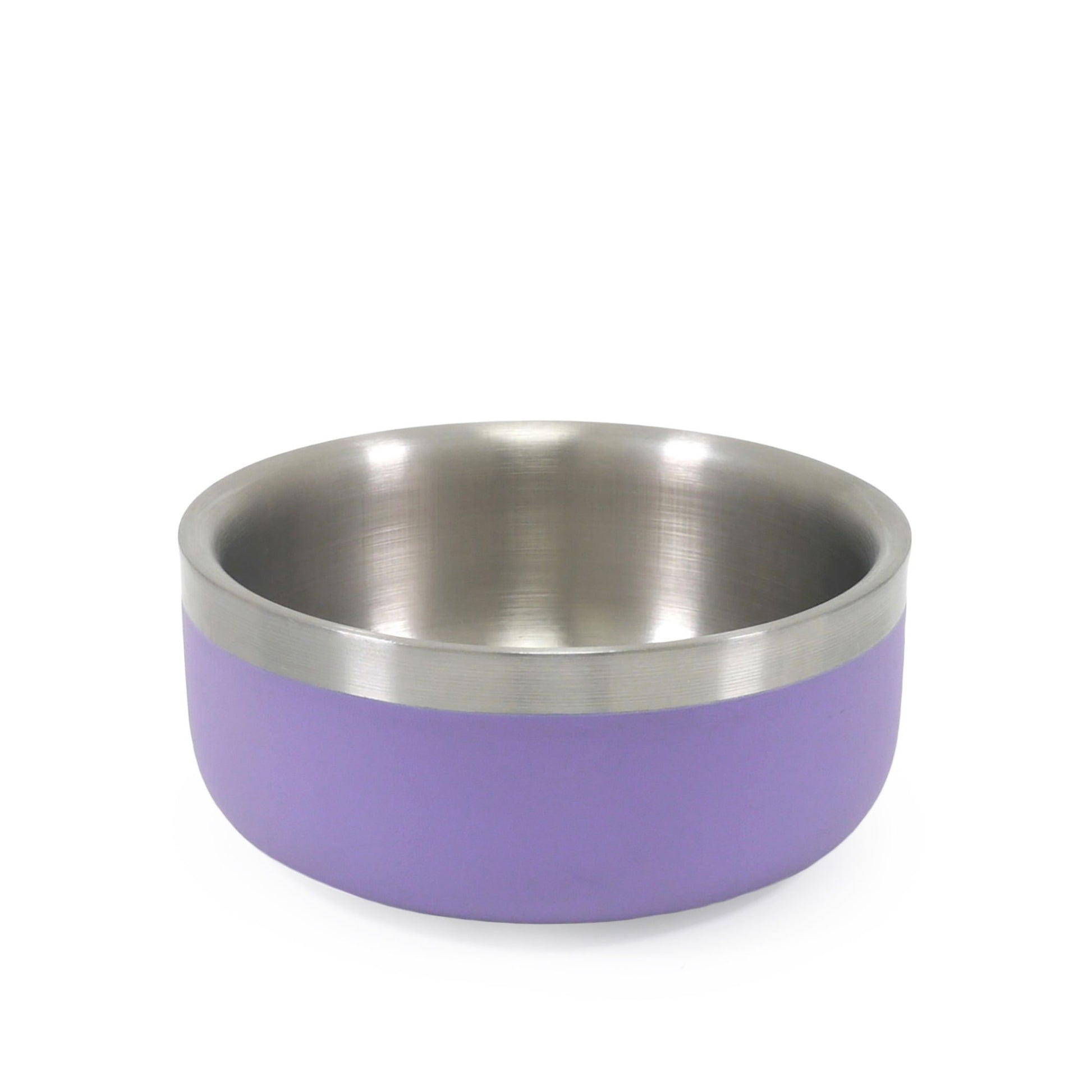 Premium bowls for stylish mealtimes. Stainless steel is chew-proof and the double-wall construction gives these bowls a quality feel. It also means they are less likely to be tipped over than standard stainless steel bowls. Easy to clean (handwash only) and with an anti-slip base. Each bowl is 12.5cm (5") in diameter and holds 350ml of food or water. Ideal for pets such as rabbits, guinea pigs and rats, but also suitable for cats and smaller dogs. Available in two stunning colours: Deep Teal and Lilac.